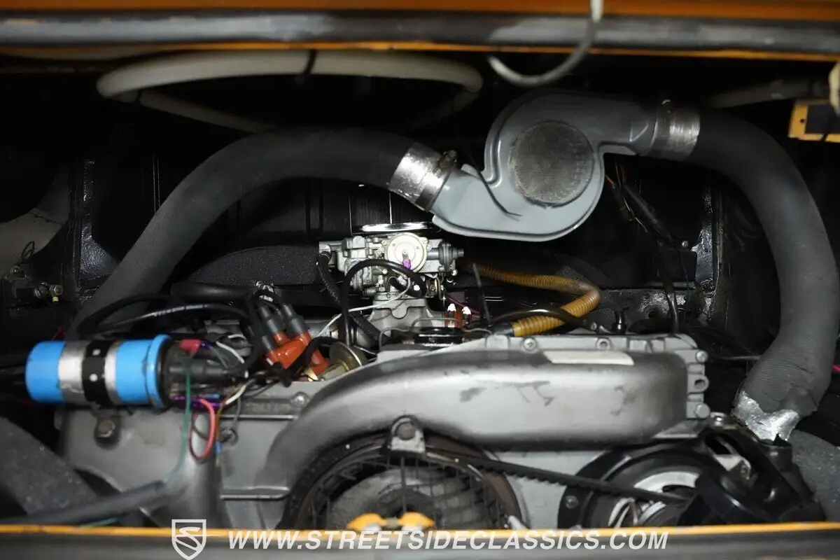 A freshly replaced 2.0-liter gasoline engine, rebuilt in 2024 with only 396 miles on the clock, forms the mechanical foundation. The engine works through a single 2-barrel Weber carburetor and mates to an equally fresh 4-speed manual transmission. The front disc brakes provide solid stopping ability, while the torsion bar front suspension and swing axle rear design give this Volkswagen its characteristic handling on the open road.