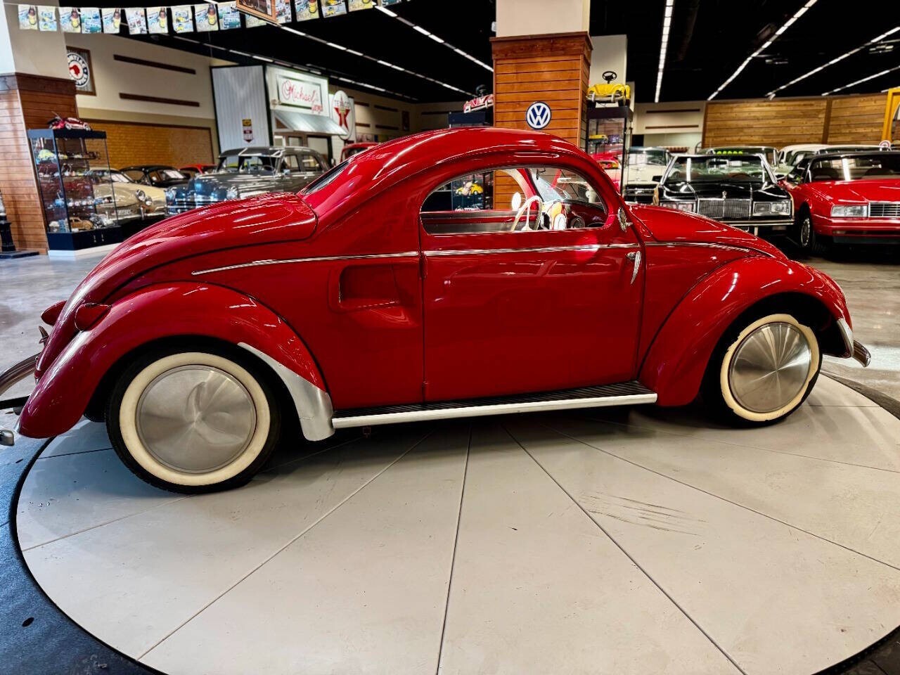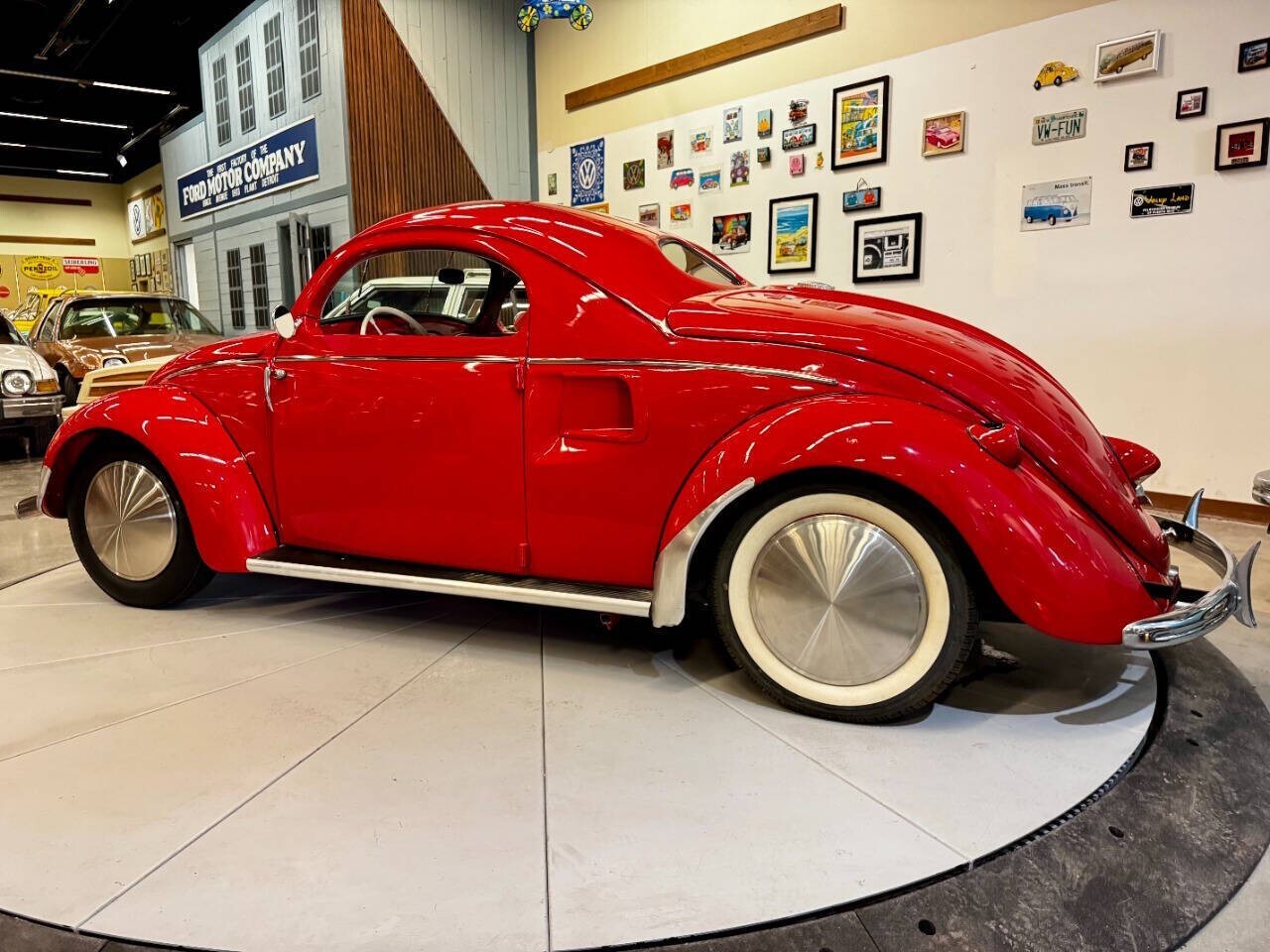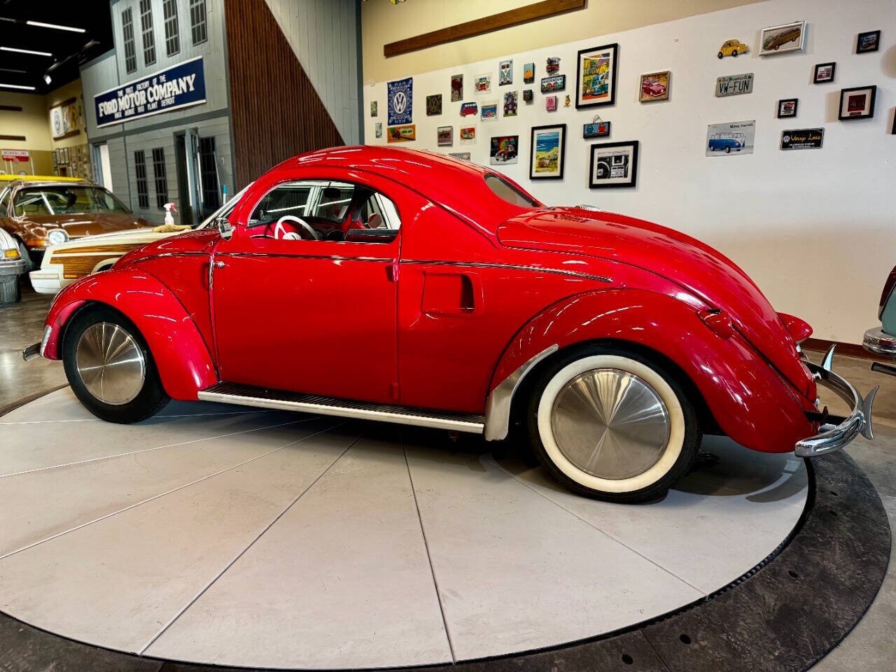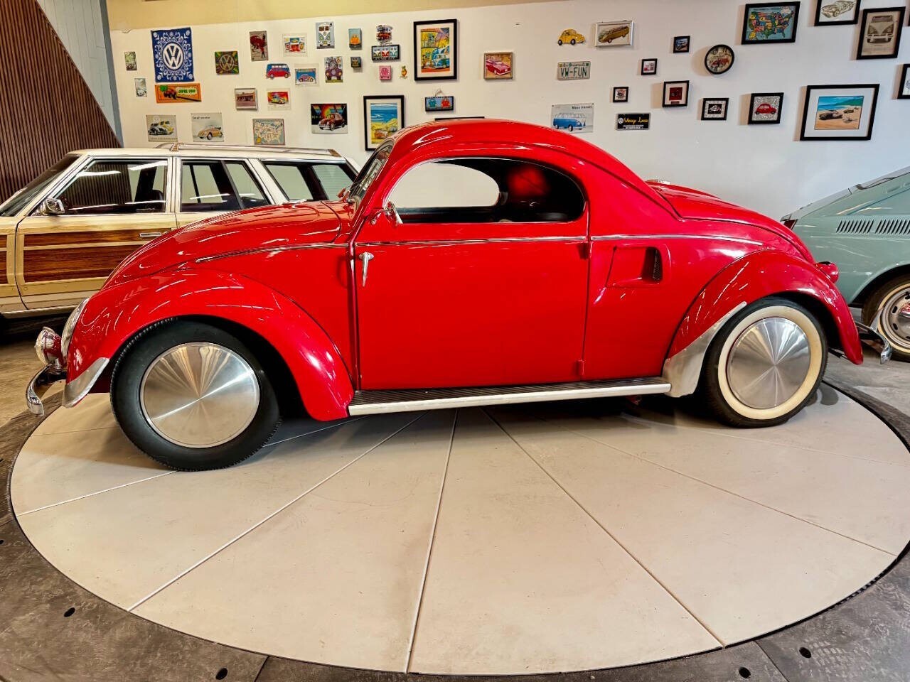 1959 Volkswagen Beetle Custom Coachbuilt Coupe | Red One-off build. Show-quality execution. Collector-grade presentation. This 1959 Volkswagen Beetle has been transformed into a custom, hand-built coachbuilt coupe on an original Beetle chassis. This is not a factory VW model and not a Hebmüller--it is a true custom steel-body coupe, executed at a high level and presented in exceptional condition. Engine & Drivetrain Specifications Engine Type: Air-cooled, horizontally opposed 4-cylinder (Boxer) Displacement: 1.2L (1192 cc) -- period-correct for 1959 Beetle platform Fuel System: Carbureted Cooling: Air-cooled Configuration: Rear-mounted Output: Approx. 36 horsepower (factory-spec range) Transmission: Manual Drivetrain: Rear-wheel drive Value Profile: Simple, reliable, globally serviceable powertrain Vehicle Highlights Custom coachbuilt steel body -- fixed-roof 2-door coupe High-gloss red paint with excellent depth and panel fit Hand-formed roofline, rear quarters, and decklid Clean, minimalist interior with custom metalwork Museum-level presentation -- ideal for display or curated collection Market Positioning One-of-one custom Volkswagen coupe High visual impact and rarity without OEM misrepresentation Strong appeal to collectors, museums, and design-driven buyers