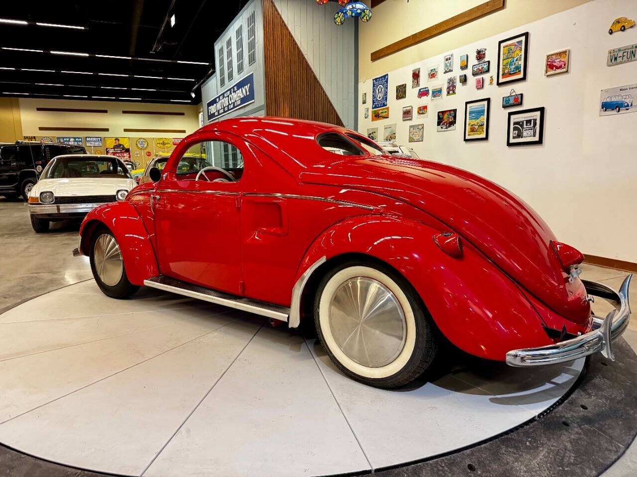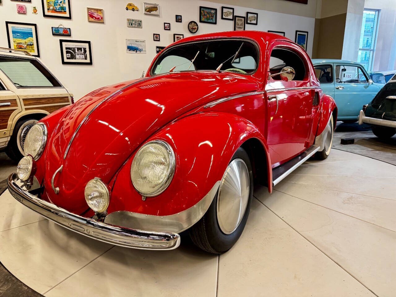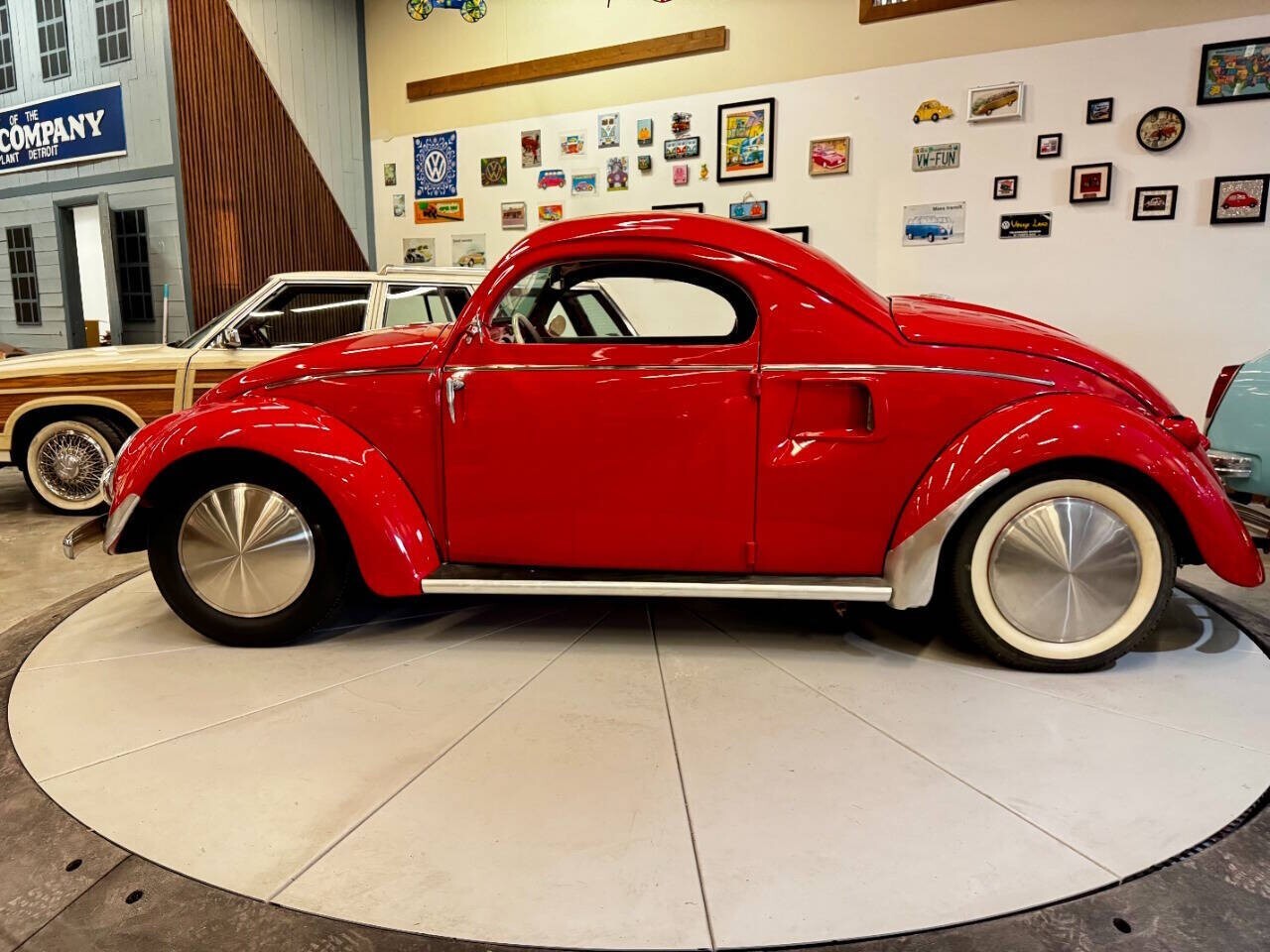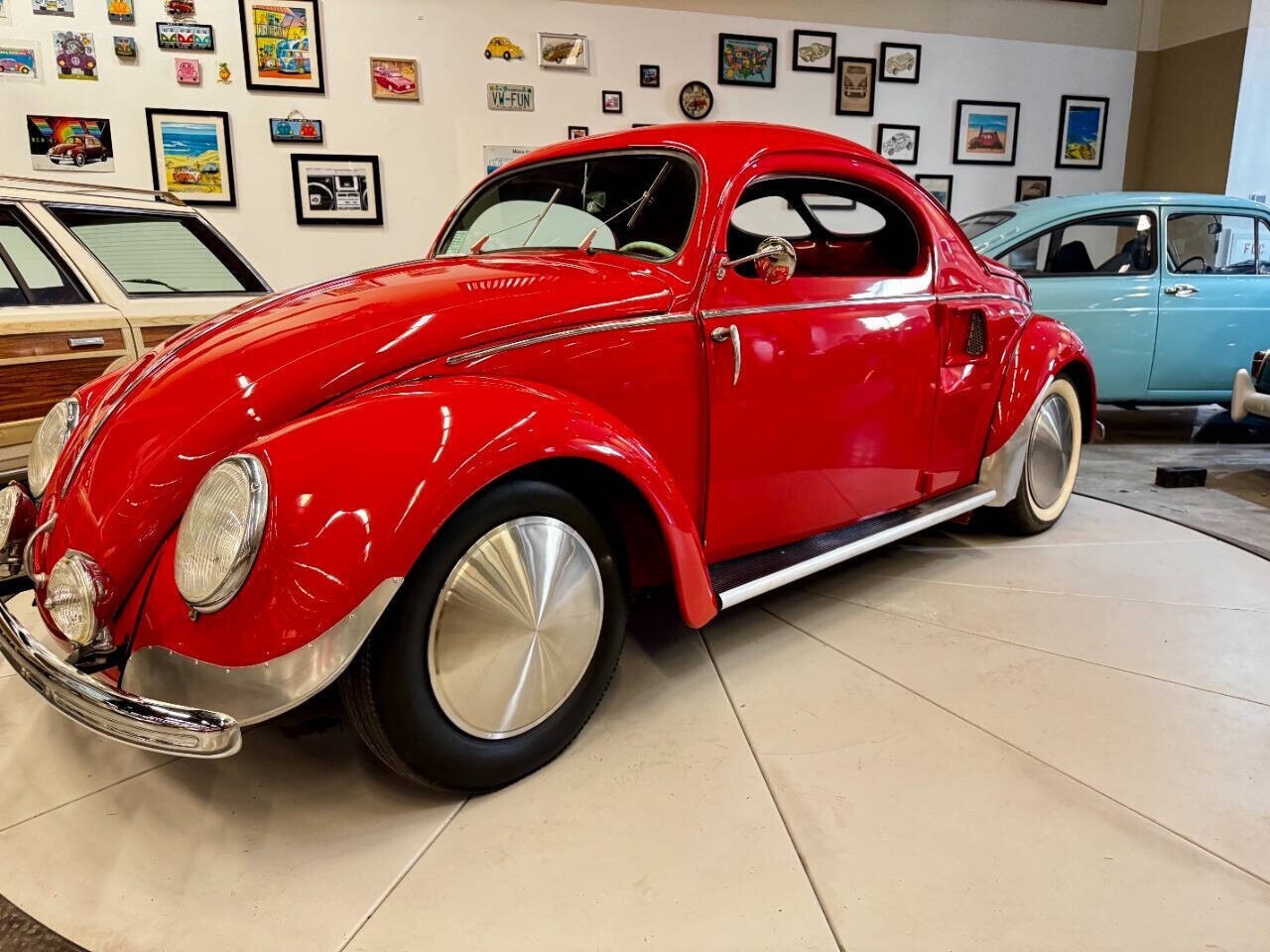 1959 Volkswagen Beetle Custom Coachbuilt Coupe | Red One-off build. Show-quality execution. Collector-grade presentation. This 1959 Volkswagen Beetle has been transformed into a custom, hand-built coachbuilt coupe on an original Beetle chassis. This is not a factory VW model and not a Hebmüller--it is a true custom steel-body coupe, executed at a high level and presented in exceptional condition. Engine & Drivetrain Specifications Engine Type: Air-cooled, horizontally opposed 4-cylinder (Boxer) Displacement: 1.2L (1192 cc) -- period-correct for 1959 Beetle platform Fuel System: Carbureted Cooling: Air-cooled Configuration: Rear-mounted Output: Approx. 36 horsepower (factory-spec range) Transmission: Manual Drivetrain: Rear-wheel drive Value Profile: Simple, reliable, globally serviceable powertrain Vehicle Highlights Custom coachbuilt steel body -- fixed-roof 2-door coupe High-gloss red paint with excellent depth and panel fit Hand-formed roofline, rear quarters, and decklid Clean, minimalist interior with custom metalwork Museum-level presentation -- ideal for display or curated collection Market Positioning One-of-one custom Volkswagen coupe High visual impact and rarity without OEM misrepresentation Strong appeal to collectors, museums, and design-driven buyers
