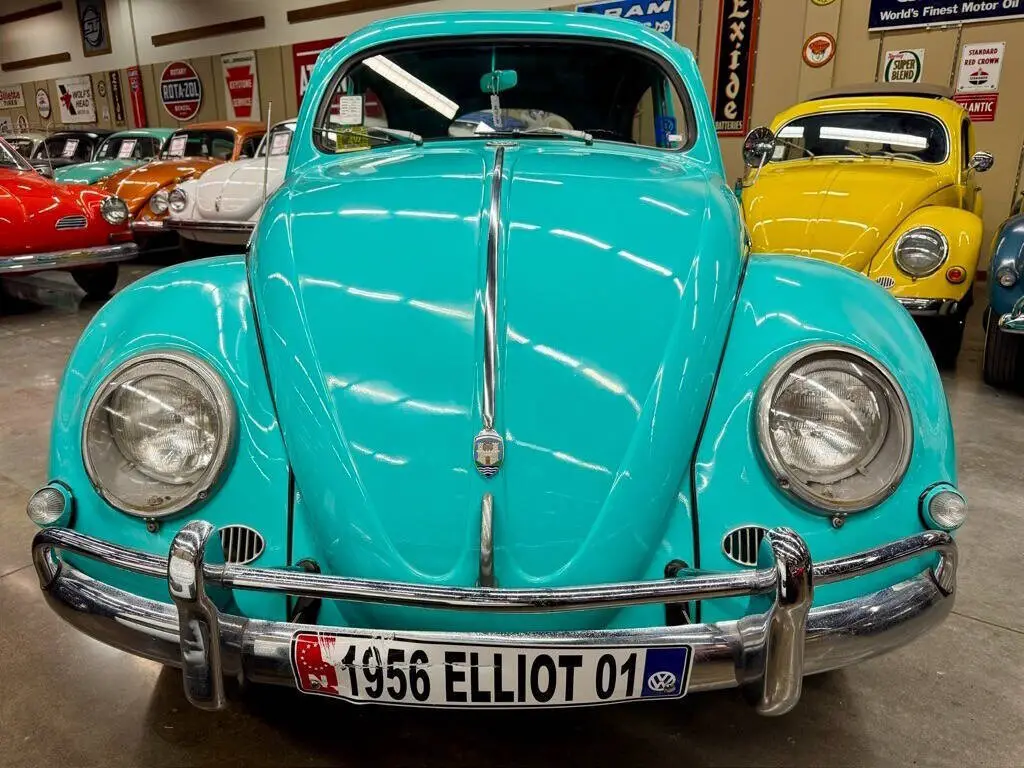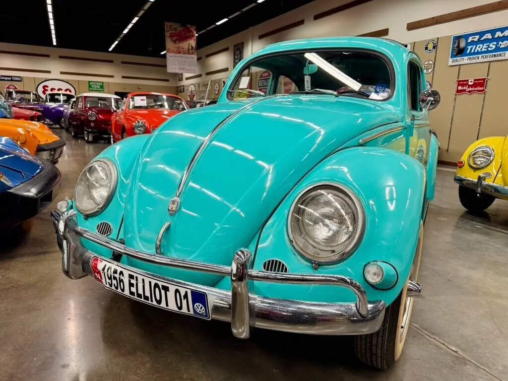 1956 Volkswagen Beetle Deluxe Sunroof (Ragtop) Only 23,244 miles Classic Car Depot LLc is proud to present this beautiful 1956 Volkswagen Beetle Deluxe Sunroof, finished in an elegant turquoise color that perfectly captures the iconic style of the 1950s Volkswagen era. This Beetle features the desirable factory sliding fabric sunroof (ragtop) and classic Oval Window design, making it one of the most collectible early Volkswagen models. The car shows 23,244 miles, highlighting its preserved vintage condition and collector appeal. The 1956 model year represents one of the most sought-after periods for the Beetle, combining timeless German engineering, simplicity,