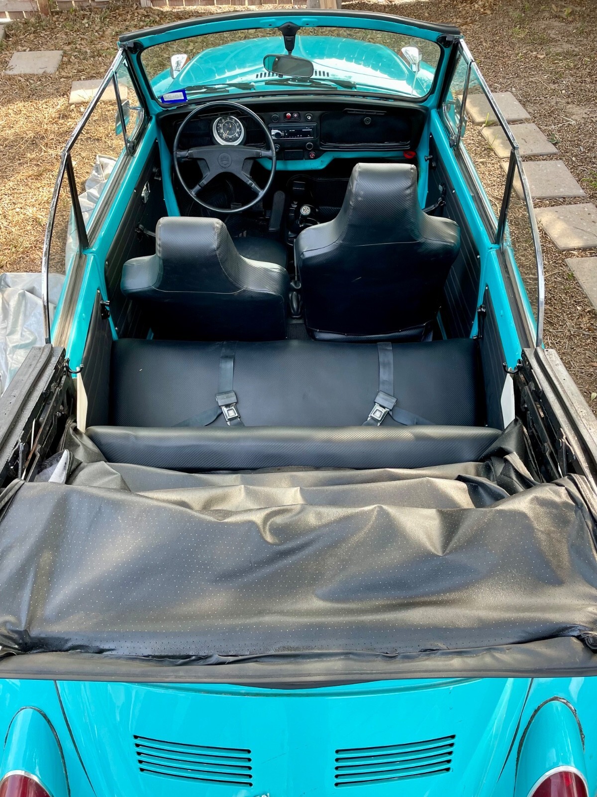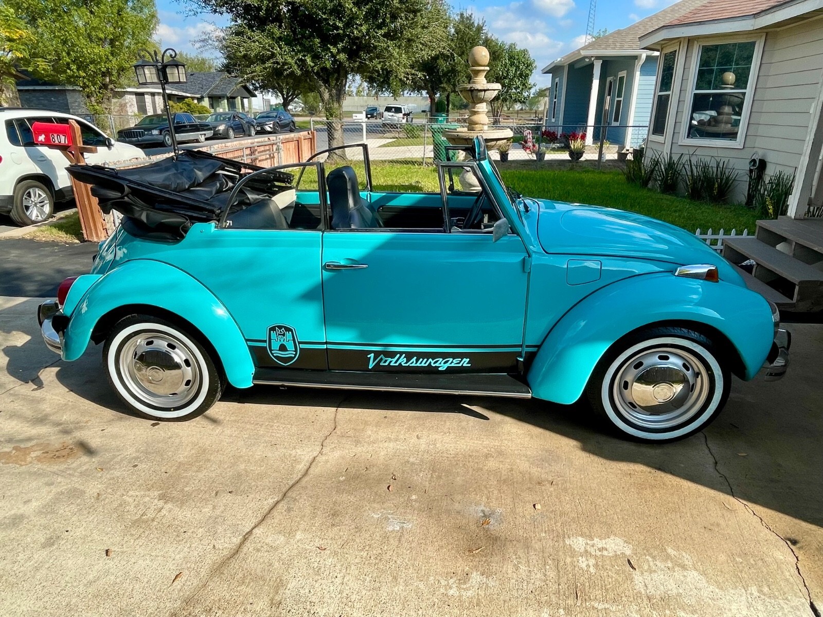 This is a very solid VW. It features a 1600cc engine that runs well and drives great, paired with a 4-speed manual transmission. I installed new floor pans, whitewall tires, carpeting, upholstery, and a new soft top. Two years ago, I gave it a fresh coat of paint in its original color. It handles beautifully and is a lot of fun to drive.