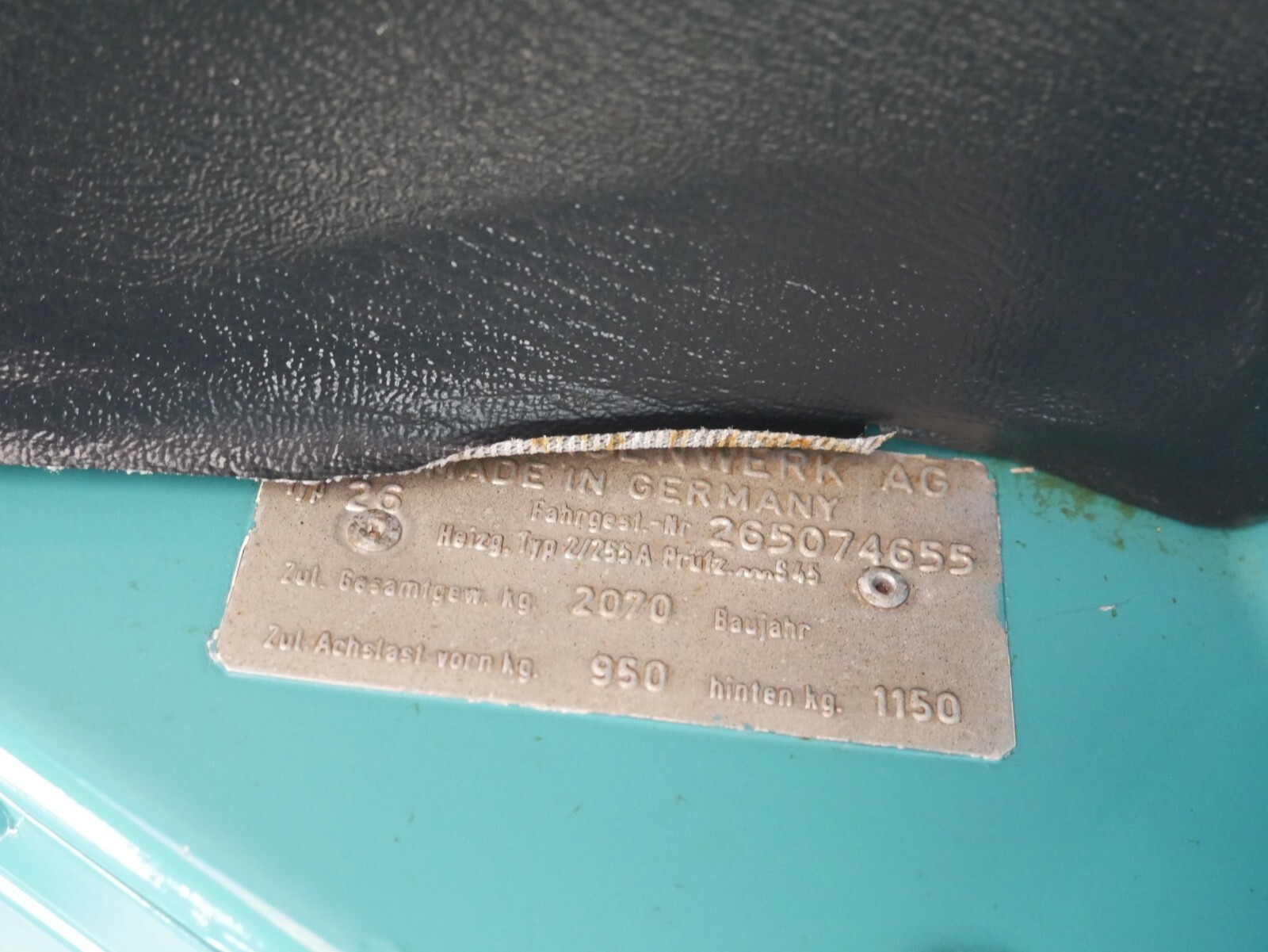 The vinyl blue/black interior is in fair condition.