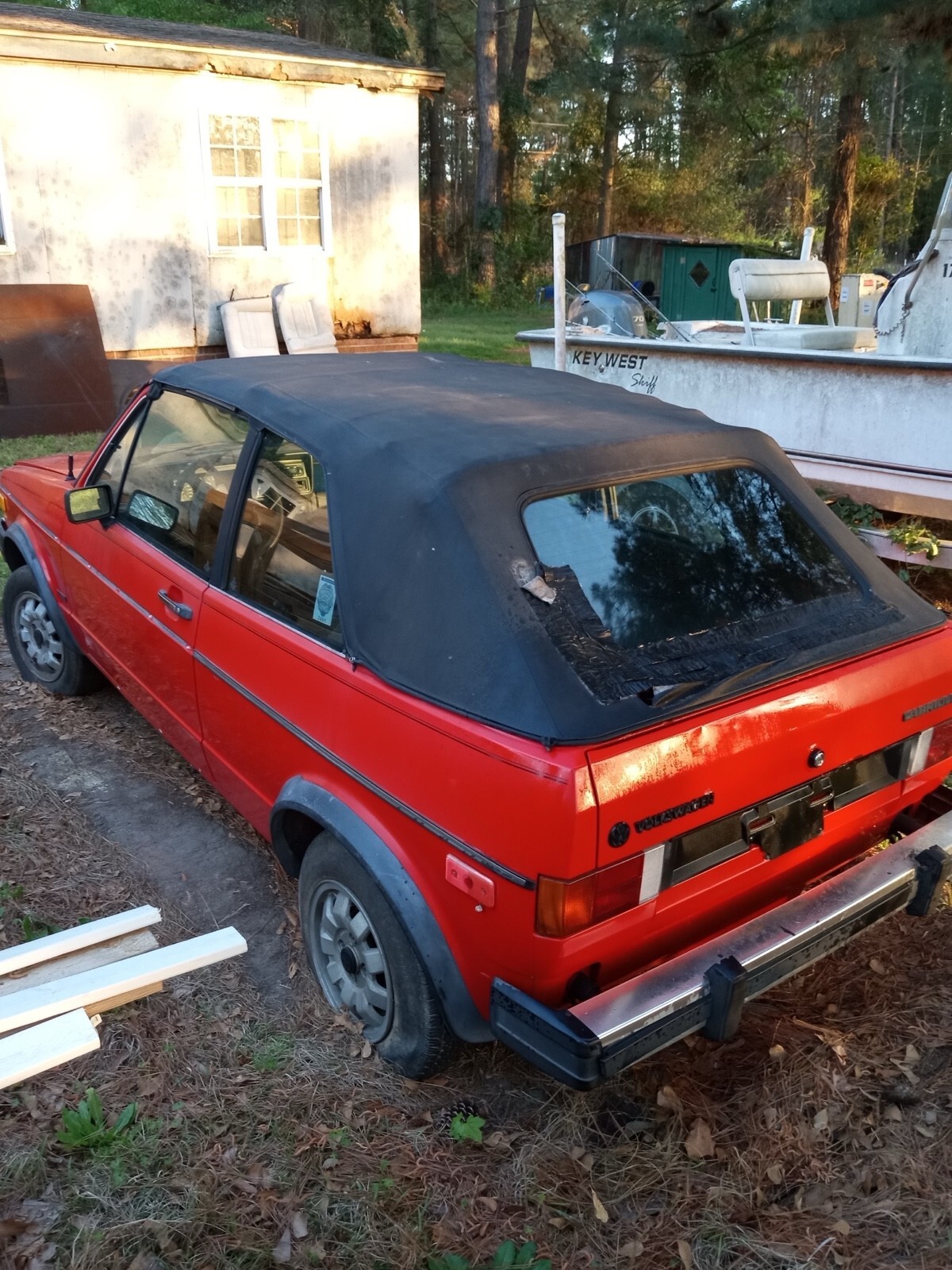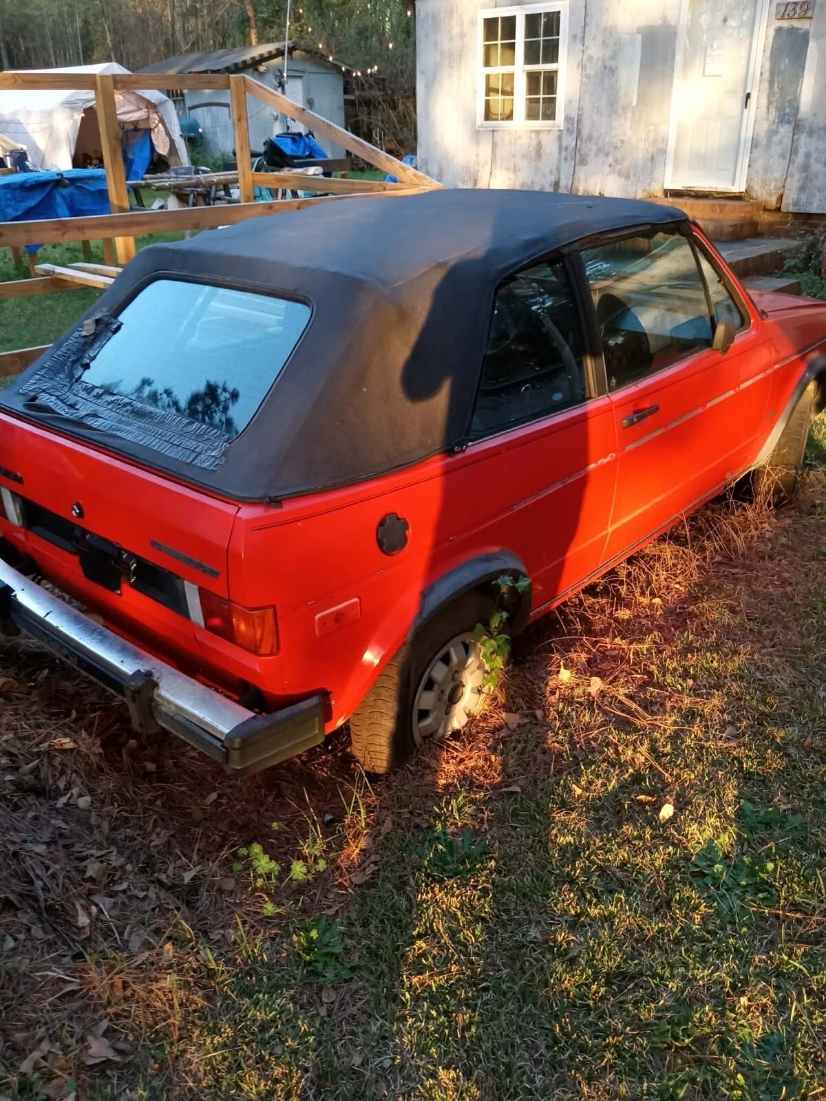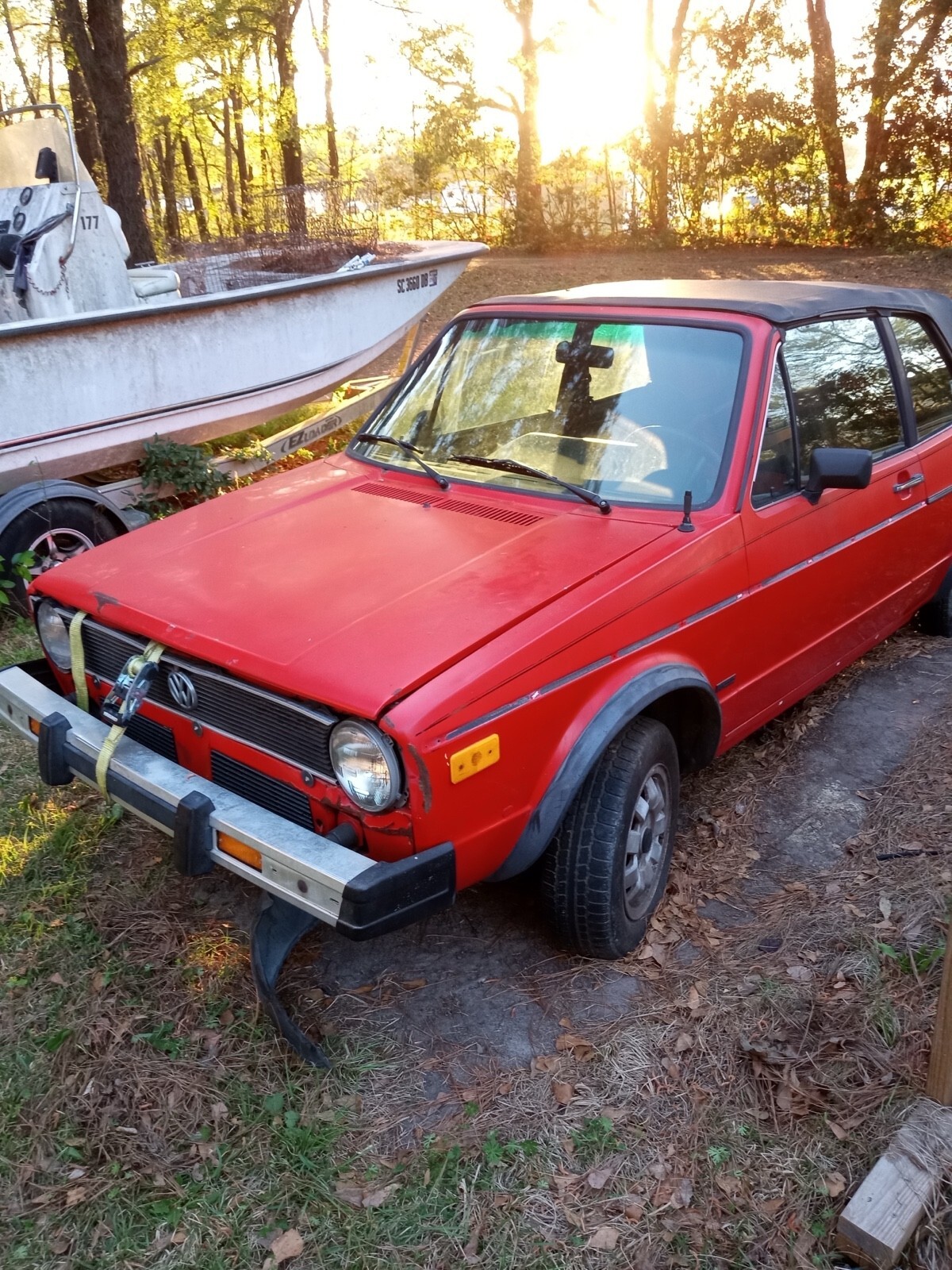 My daughter is selling her 1985 cabriolet (with clear SC title). This was going to be her first car but due to her increasingly failing eyesight due to her having Ehlers Danlos Syndrome. It is unlikely she will ever be able to drive by time she is old enough to get her license. So this is a huge heartbreak for her. She has been collecting parts to assemble it for the past year as we could afford to. The car main body has one small rust hole about the size of a pencil eraser (shown in pictures). The stock hood is damaged and pulled apart because someone was prying at it at some point. The car comes with a new replacement. Comes with an extra rear hatch and new passenger fender. I was able to find a replacement driver fender rather than trying to do the minor body work on the front near the headlight. The radiator core support/header panel will need some body work because it is a little bit tweaked but not awful. There is no pan rust anywhere. The original seats were trash and removed/tossed. We were able to find a decent replacement back seat that we were going to scrub and dye and then put aftermarket buckets up front. Dash is in nice shape. The previous owner kept it indoors for 11 years. Removed the transmission to be rebuilt, most likely the syncros being replaced but he never got the transmission back. So we got the car without the trans. So we were able to find a engine and trans combo. I assume the transmission is good because it was a driveable car until it was wrecked. The engine however is stuck from sitting. Still great for parts. Even tracked down a factory spare. The car will need a new top (bad spot being below the rear window) but the frame works perfectly as it should. Tires will pump up enough to load, has the stock 13 inch wheels. The car has 129,000 miles. Will also include a partial body piece from a parts car that will have another steering colum (however this one has an airbag), extra suspension parts and shifter linkage. The linkage is the biggest reason for holding onto it and I wanted to keep it together. I have a tractor with a boom pole that can load the engine/trans and center parts .