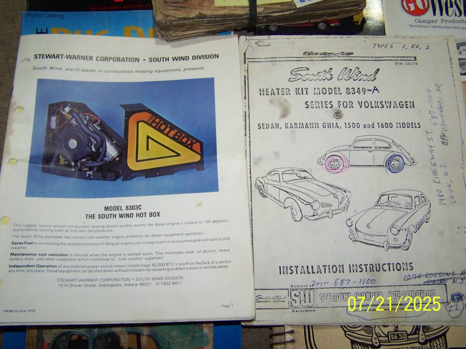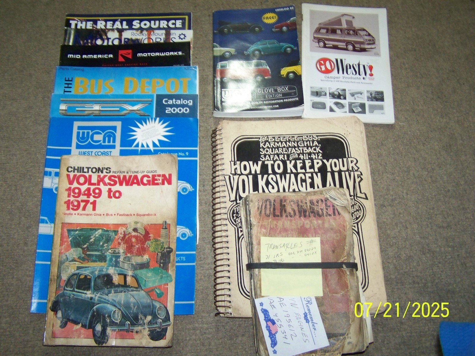 manuals, parts catalogs, receipts