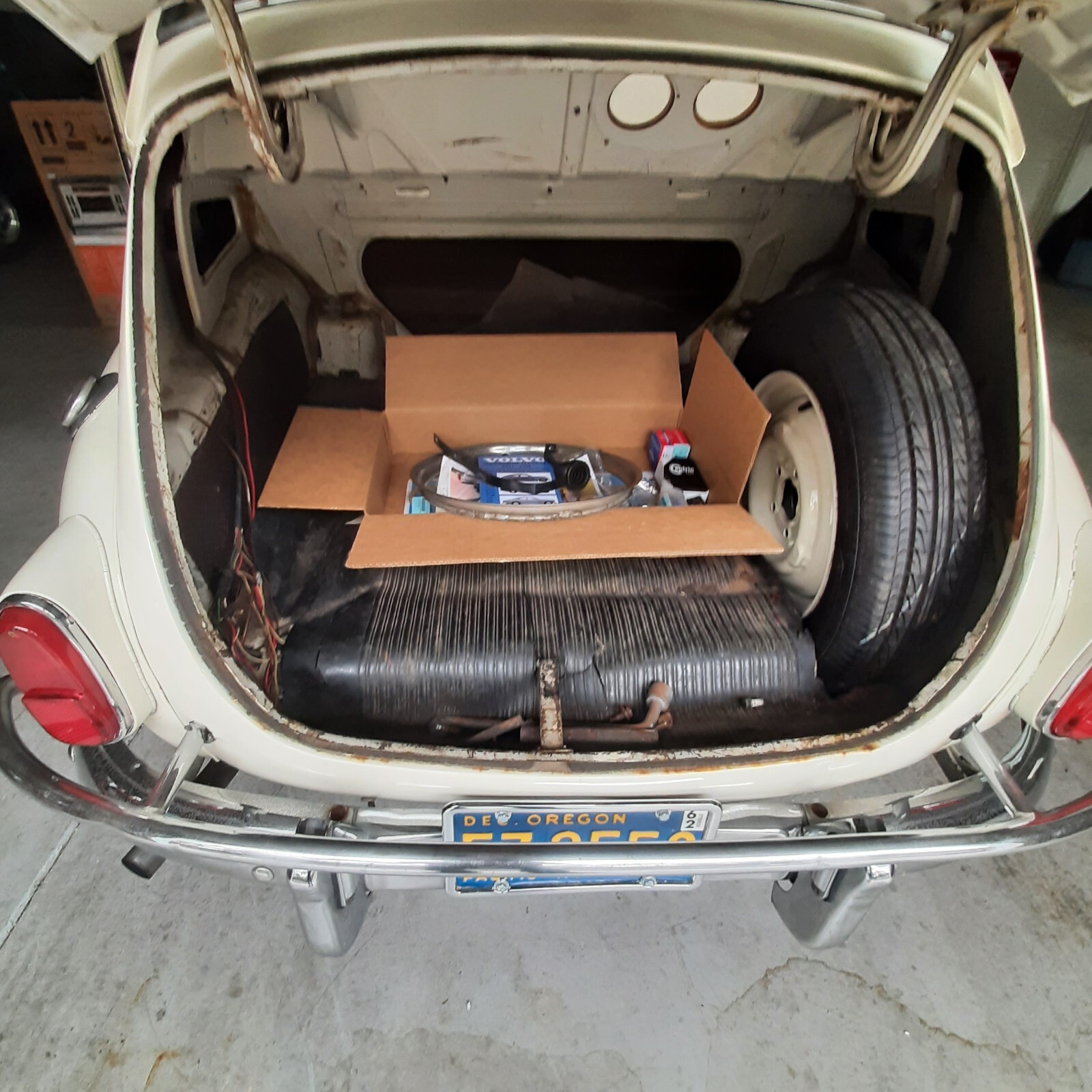 A previous owner had removed the heater and its components. I suspect it might have had a leaky heater core. I have kept those components and bought some additional heater parts on eBay which will go with the car (see photo). I am not sure if ALL the heater components are present. There are additional parts included as well.