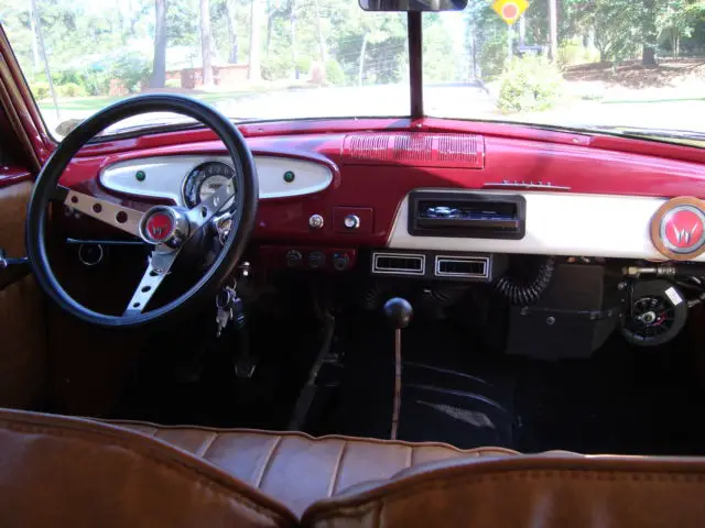 A good original Willys Aerowing sedan which was modified in North Carolina. The vehicle was completely redone, and a re-manufacturedFord V-8 was installed along with aftermarket air conditioning and a 5 speed manual transmission. A CD player radio was also placed in the dashboard. The car was re-painted in the original colors of Maroon and White, and deluxe hub-caps (a factory option) were placed on new white wall tires. From the outside the car looks as original, but it does have a modern engine and transmission. Extra hub-caps and the original glove box are in the car. The glove box is not installed because of the air conditioner taking up space. The car has less that 500 miles since being rebuilt, and has been stored in an enclosed garage. The temperature gauge does not work, and a replacement gauge is installed. The gas tank was cleaned and sealed at the time of remodeling. The car is registered and driven without any problems other than those noted.