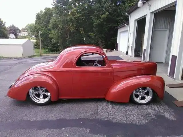 dennis taylor 1941 body with a art morrison chassis with chrome wilwood polish calipers 4 wheel power disc brakes 4 bar rear polish coilovers all 4 corners 9inch ford 350 gears .crate 502 450hp with polish chrome goodies added ac/heat/defrost,700r transmission from phoenix transmissions texas,ididit tilt chrome column,remote doors, power windows, cd overhead, tobacco leather interior with wool carpet .paint is dupont prowler orange with lots of clear chassis and underside of body also done in prowler orange chip guarded under fenders.polish americans 20x10 rear 17x7 front built with the best stuff u can buy no used parts here .these cars are expensive to build body/chassis packages from 23to 30 k alone price to sell good luck also have brand new 22 foot trailer extra if wanted