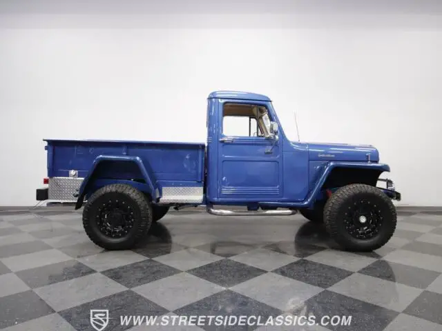 This 1961 Willys Pickup is a distinct kind of classic. It keeps the vintage 4x4 attitude that is at the bedrock of Willys/Jeep, but it also updates the legend with V8 power, sleek paint, and a custom/comfy interior.