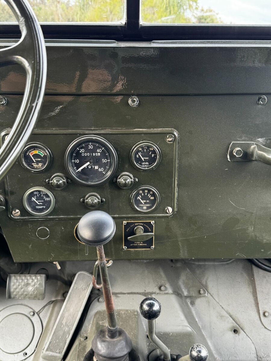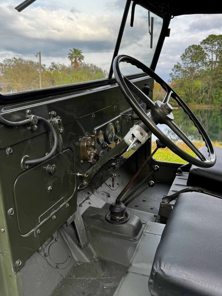 1962 Willys M38A1. All original except batteries and tires. Everything works including black out lights, wipers, gauges, switches, etc. Still has protective cover over ax edge. Shows 197 miles on the clock and it works. Probably as close as you'll come to a new M38A1. Currently licensed and insured. Located in the Orlando, Florida area. $25,000 cash or wire transfer.
