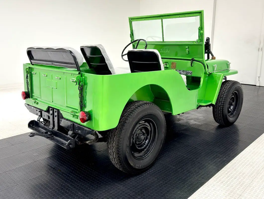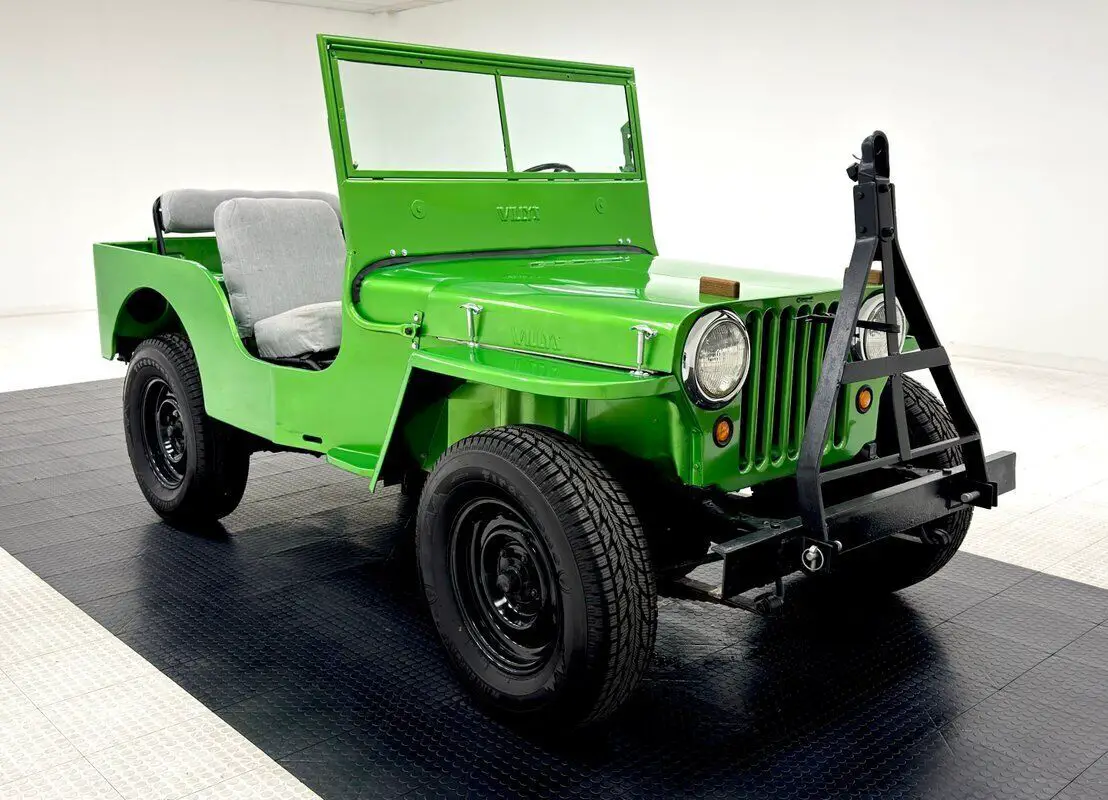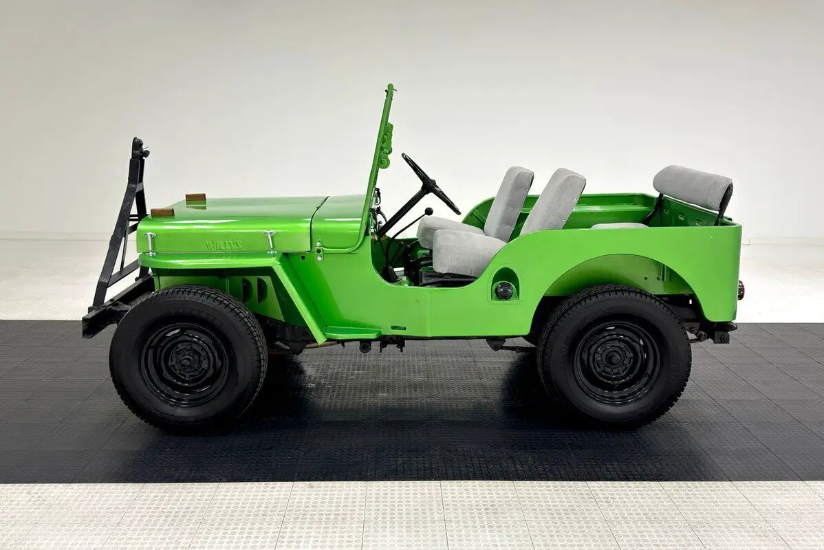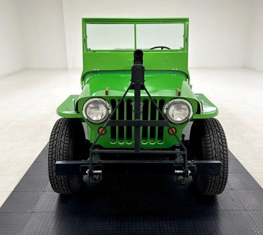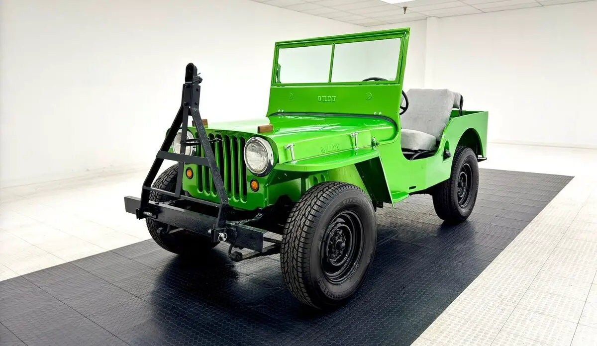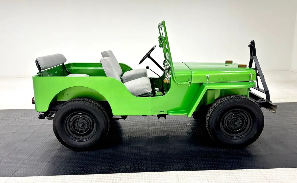 1948 Willys CJ2A For consignment, a 1948 Willys CJ2A with a title verified 1,304 actual miles, looking otherworldly in its coat of Alien Green paint. It's clean inside and out and is a bright example of a utilitarian vehicle used for farms and trails in its heyday. 74,122 CJ2A's were produced in 1948. Exterior In a color yet imagined in 1948, this bright shade of green only recently started hitting the show circuit and looks great on our CJ. The scale of the car is really brought into view with the use of black wheels, 15-inch here wrapped in 225/75R15's and contrasting sharply to the Alien Green body, a study in square edges right down to the flat front fenders. Black also takes in the back bumper and front hitch which can be hooked to your camper for those outdoor expeditions. The vertical windshield is on hinges and can be tilted, or kept in place as the entire assembly is lowered onto the hood for the ultimate open air ride! A paint run, a multi part scratch, and some rock chips are the only exterior imperfections we note. Interior As sparse as it gets, you'll find two bucket seats up front covered nicely in gray vinyl which continues to the small back bench. The 3 spoke steering wheel front a green dash, as if the car was dipped in the alien stuff, adorned by a few black faced gauges, ignition, and the typical informational plates that add to the coolness. The shifter and range selectors are floor mounted and with no front mats, green paint is underfoot. The rear passengers get a rubber mat. Drivetrain In the shiny green bay is a driver quality 134ci L-head Go Devil four cylinder rated at 60 hp, fueled by a 1-barrel carburetor and backed by a Borg Warner T90 3-speed manual transmission and a Dana 18 transfer case that splits power between 5.38 gears front and rear. Drum brakes are on board, also on front and back. Undercarriage At first we thought the mud splatter might be a graphic affixed to the bottom, similar to what you might find on Ford Raptors. But no, that's actual mud underneath giving us a taste of what this vehicle is capable of getting into while retaining its topside good looks! Through the mud we see an otherwise clean underside, with some oil noted on the rear differential and transfer case. Not much mud stuck to the single exhaust which heads into a stock style muffler after turning towards the passenger side and exiting behind the wheel. Leaf spring suspension is in front and in back. Drive-Ability This spry little CJ is true to form with spunky driving, straight tracking, and an ability to communicate imperfections in the road at the same time as handling them! Driving the car really is an outdoor experience and one you might want to reserve for nice days, but whatever you throw at it, it's likely to comply. Overall, a fun ride in a bright happy color which is completely functional. While Classic Auto Mall represents that these functions were working at the time of our test drive, we cannot guarantee these functions will be working at the time of your purchase. Pound for pound, one of the most fun vehicles you can purchase for the money. It's light, open, and capable, and this one in a color that also makes it show worthy! If you're looking for some bare bones adventures while maintaining your good looks, this is the perfect CJ for the task. Classic Auto Mall is home to more than 1,000 classic and collectible vehicles for sale via consignment in a climate controlled 336,000-square foot showroom (that's more than 8 acres!). The largest single location consignment dealer of classic and collectible vehicles in the country is located in Morgantown, Pennsylvania, just 1-hour west of Philadelphia off Exit 298 of the I-76 Pennsylvania Turnpike. For more information visit or call us at 855-201-7026. Contact us anytime for more information or to come see the vehicle in person. There is no guarantee of mileage. A $299 Dealer Administrative fee is not included in the advertised price. With so many great cars, you know we have a lot to talk about, and we do that each week on the Classic Auto Mall Podcast with host Stewart Howden. Stewart discusses new inventory as well as trends in consignments and car prices, while interviewing celebrities and automotive professionals about amazing cars and their history. Tune in each week to the Classic Auto Mall Podcast wherever you enjoy listening. You can also watch on YouTube!