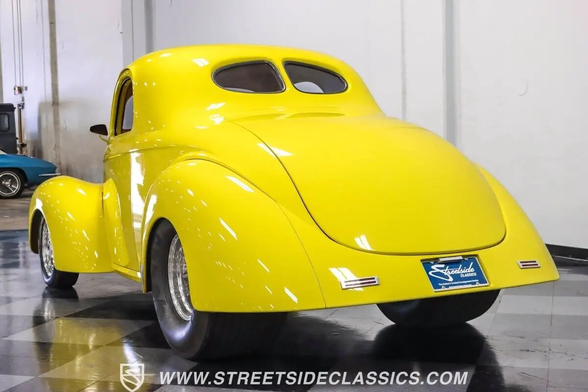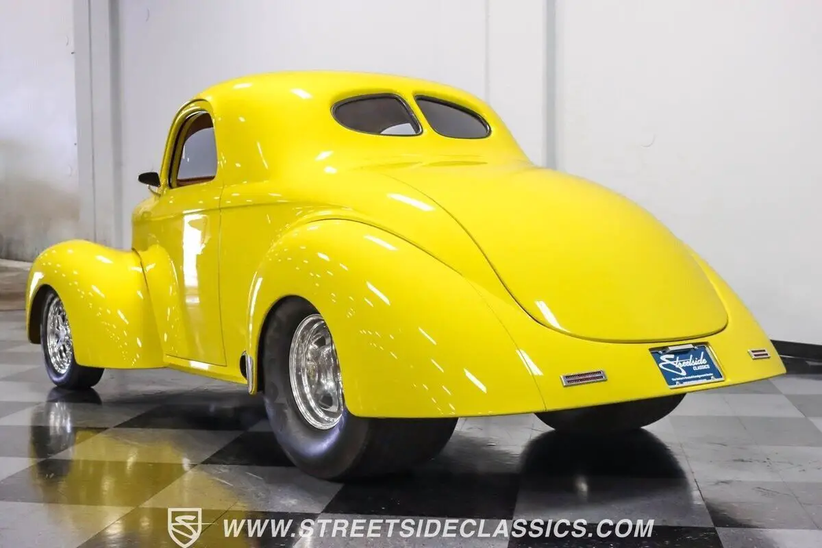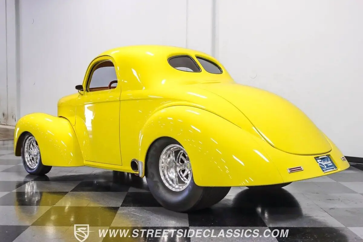 Vehicle Original VIN : OP1WC05381Built as a promotional showpiece by Stone Mountain Auto in NC, this 1941 Willys ProStreet Coupe flaunts a custom-blended Lemonade yellow finish on its Outlaw fiberglass body. The wide rear stance accommodates massive 445/50R15 Pro-Trac tires, while 185/65R15 Michelins guide the front. Racing-inspired touches include shaved door handles, drip rails, and chrome Willys spinners on deep dish 15-inch wheels. The fully customized tan and brown leather interior showcases power bucket seats and a custom center console. Moon Eyes gauges mounted in a custom panel keep tabs on vital signs, while a Custom Auto Sound system with CD changer delivers entertainment. The tilt steering column pairs with a Lokar shifter, and conveniences include power windows, air conditioning and controls for the front air-ride system. The 502 cubic inch GM Performance crate V8 brings serious muscle, equipped with Edelbrock aluminum square-port heads and an Isky hydraulic roller cam. The Holley Terminator EFI system feeds the beast with long-tube headers flowing to side-exit straight pipes. A 4L80E 4-speed automatic transmission channels power to the 9-inch rear with 4.56 gears. The chassis features tubular control arms with RideTech air bags up front and a 4-link with coilovers out back. Cross-drilled and slotted disc brakes provide stopping power. HIGHLIGHTS: • 502 GM Performance Crate V8 • Holley Terminator Electronic Fuel Injection • 4L80E 4-Speed Automatic Transmission • Edelbrock Aluminum Square-Port Heads • Isky Hydraulic Roller Camshaft • Cross-Drilled & Slotted 4-Wheel Disc Brakes • Long-Tube Headers with Side-Exit Straight Pipes • 9-inch Rear End with 4.56 Gears • RideTech Air Ride Front Suspension • Tubular Control Arms • 4-Link Rear Suspension with Coilovers • Power Rack & Pinion Steering • Triple Electric Cooling Fans with Aluminum Radiator • Custom-Blended Lemonade Yellow Paint • Outlaw Fiberglass Body • Shaved Door Handles and Drip Rails • 15-inch Deep Dish Wheels with Willys Spinners • 185/65R15 Michelin Front Tires • 445/50R15 Pro-Trac Rear Tires • Removable Front Protection Bra • Custom Tan and Brown Leather Interior with Power Bucket Seats • Moon Eyes Gauges • Custom Auto Sound System with CD Changer • Air Conditioning • Power Windows • Tilt Steering Column • Lokar Shifter • Billet Accessories • Custom Speaker Installation • Build Documentation This 1941 Willys ProStreet Coupe combines show-quality craftsmanship with a 502 cubic inch fuel injected GM V8, custom leather interior, and race-inspired suspension for an unmatched street machine. Call today!