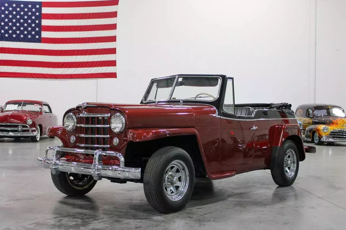 Vehicle Original VIN : 473VJ10757• This vehicle is located at our Indianapolis facility - 2461 Reeves Rd #194, Plainfield, IN 46168 • After WW2, Willys-Overland found itself in a unique position as one of the few producers of 4WD vehicles, unfortunately, few people wanted a tough utility vehicle, so plans were made to make a larger, open top pseudo SUV. The new model was called the Jeepster and it featured unique styling and high featured content, but was a killed in the sales race by competitors. GR Auto Gallery is pleased to present this stunning 1952 Jeepster for your consideration. This lovely little Willys is finished in a Buckeye Red with black vinyl seats with white piping. This Jeepster is powered by its 4-cylinder Hurricane F head, 3-speed on the column with working overdrive. Recent maintenance includes a new gas tank, new fuel pump, new radiator, new water pump, four new wheel cylinders, new brake lines, and a new starter. Willys Jeepsters remain very desirable vehicles, Their reliability and simplicity make them easy to own and enjoy. For these reasons, high quality examples such as this are highly sought after. Price does not include applicable tax, title, license, processing, and/or $199 documentation fees. To see over 80 photos of this car, including the undercarriage please visit our website br/-