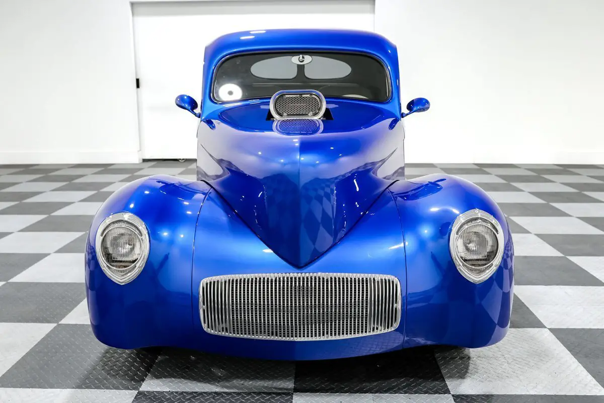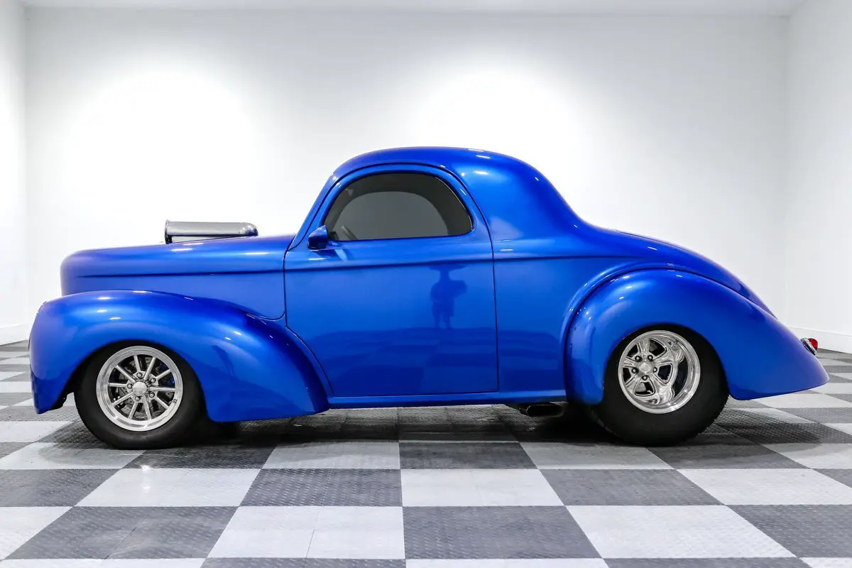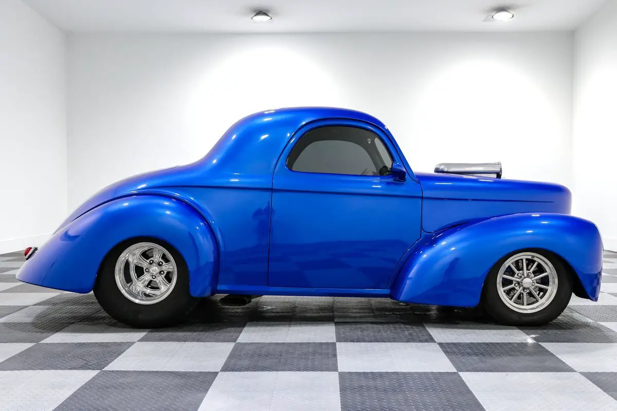 Built to dominate both the show field and the dragstrip, this 1941 Willys Coupe is a no-compromise Pro Street monster with jaw-dropping power and top-shelf craftsmanship. Beneath the fiberglass body beats a Smeding Performance 540ci big block V8 with aluminum heads, a Weiand tunnel ram, and dual Holley 650 carbs-dynoed at a tire-melting 707 horsepower and 720 lb-ft of torque. A built Turbo 400 automatic with a Coan 3800 stall converter sends all that fury through a Fab 9-inch rear with 3.55 gears and posi, while full 3-inch exhaust lets this beast roar like it means it. This Willys isn't just fast-it's built right. The Mustang II front suspension with tubular control arms and manual rack-and-pinion steering keeps things planted up front, while coilovers and a 4-link rear setup make sure all that torque hits the pavement. Power brakes and 4-wheel discs give it the stopping power it needs, and it rolls on Rocket Racing wheels up front and Billet Specialties in the rear to complete the classic Pro Street look. Open the remote-release doors and trunk, and you'll find a custom gray leather interior stitched by Steve Holcomb, featuring bucket seats, an overhead console, tilt column, Autometer gauges, and power windows. It even includes a Vintage Air underdash A/C system (currently not hooked up) for comfort to match the performance. Every inch was built with intention, blending dragstrip heritage with modern drivability. Finished in a bold blue that screams attitude, this Willys Coupe is more than just a tribute to the gassers of old-it's a fully modern, big block-powered street machine that backs up its looks with serious performance. Whether you're burning rubber or collecting trophies, this is a statement car in every sense of the word. If you're after a show-stopping icon with real bite, this 1941 Willys Coupe is the ultimate mix of outrageous styling, meticulous build quality, and raw American horsepower. Power Brakes - Tubular Control Arms - Moroso Racing Oil Pan - Weiand Tunnel Ram Intake - Vintage Air Underdash System - AC Not Hooked Up - Tilt Steering Column - Smeding Performance 540ci Big Block V8 - Smeding Aluminum Heads - Rocket Racing Front Wheels - Remote Trunk and Hood Release - Power Windows - Power Door Poppers - Overhead Console - Mustang II Front suspension - Manual Rack & Pinion Steering - Leather Interior by Steve Holcomb - Full 3 Inch Exhaust - Fab 9 inch w/ 3.55 gears and posi - Dynoed at 707hp and 720lbft - Dual Holley 650cfm 4 Barrel Carburetors - Comp Hydraulic Roller Camshaft - Coilovers All Around - Coan 3800 Stall Converter - Built Turbo 400 Automatic - Billet Specialties Rear Wheels - Autometer Gauges - Aluminum Radiator with Electric Fan - 4 Wheel Disc Brakes - 4 Link Rear Suspension - 15 Gallon Fuel Cell Operational Assessment Yes - Runs Yes - Fuel Gauge Yes - Turn Signals Yes - Heater Yes - Tail Lights Yes - Tachometer Yes - Headlights Yes - Speedometer Yes - Horn Yes - Brake Lights No - Air Conditioning Yes - Temperature Gauge Yes - Oil Pressure Gauge Yes - Radio