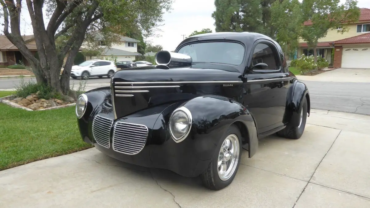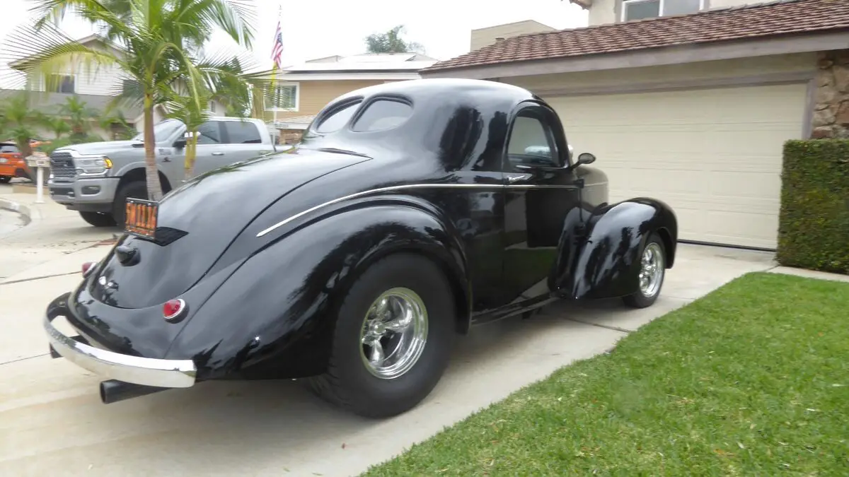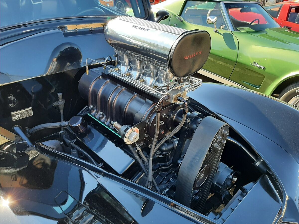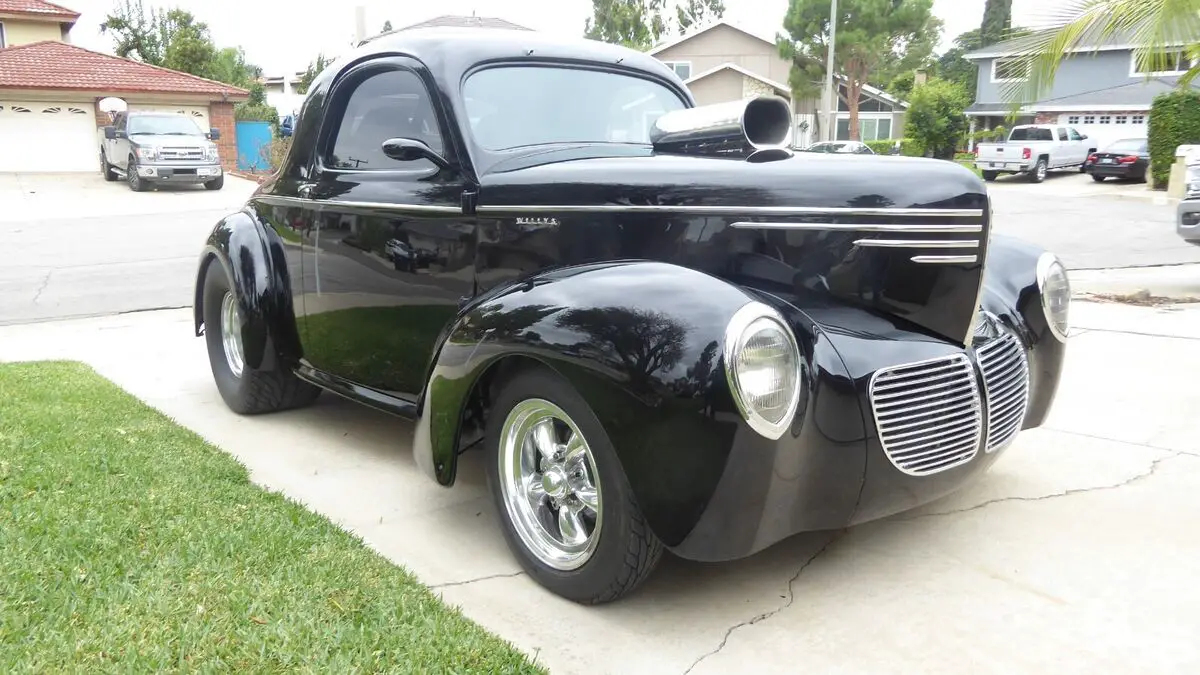 All steel 1937 Willys coupe with 1940 Deluxe front sheet metal,rear fenders and deck lid. Chassis is fully boxed. Tubular A-armswith QA-1 coil over shocks front and rear. Brakes are Aerospace discs,12" front and rear. American Racing 15x5 front wheels and 15x10rear, polished 5 spoke aluminum wheels. 8 point chrome moly roll cage.Dash is 41 with VDO gauges and tach. 31 splined axles w/ Ford Detroit Locker rear end and 4 link bars. Front and rear anti-sway bars. Has remote locking system. Interior is black leather with charcoal German Square Weave carpet. Alpine sound system with external amp. Speakers in door and package tray.Engine is pro built Dart 427 cu. in sbc with port and polished Platinim Pro 1heads. JE pistons, Eagle rods and Callies crank balanced and blue printedby Promod racer John Scialpi of Wopadoo Racing. Supercharger is 871 HiHelix Littlefield with Kobelco Superman rotors. Custom tubular headers running through Magneflow stainless XR1 race mufflers. 840 hp on dyno @ 7% under driven. 4l80 trans with overdrive. 70 mph @ 2500.The paint and body work was done by custom painter Mark MaHood.Body was taken down to bare metal before being painted gloss black.This car gets driven locally 1-2 times a week. Driven 50 miles on theweekend in freeway stop and go traffic. 200º maximum on a 90º day.Considering the horsepower, this is a reliable driver. Utilizes twoOptima batteries with 150 amp alternator. All battery cables are OOthickness welding cables. All gauges work. Interior inside light as well.