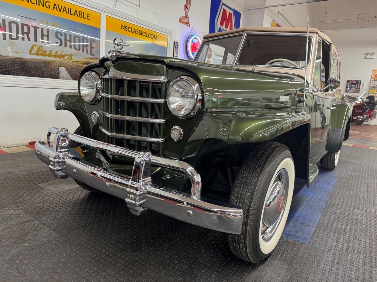 (844) 652-8767(844) 652-8767 12345678910111213141516171819202122232425262728293031323334353637383940414243444546474849505152535455of55 Full size photos Full size photos Willys Jeepster Sportsman Green with 12,345 Miles, for sale! Stock #: 51256KFCV Exterior Color: Sportsman Green Interior Color: Beige/Tan Transmission: 3 Speed Manual Engine: 4 cyl Mileage: 12,345 Vehicle Warranty