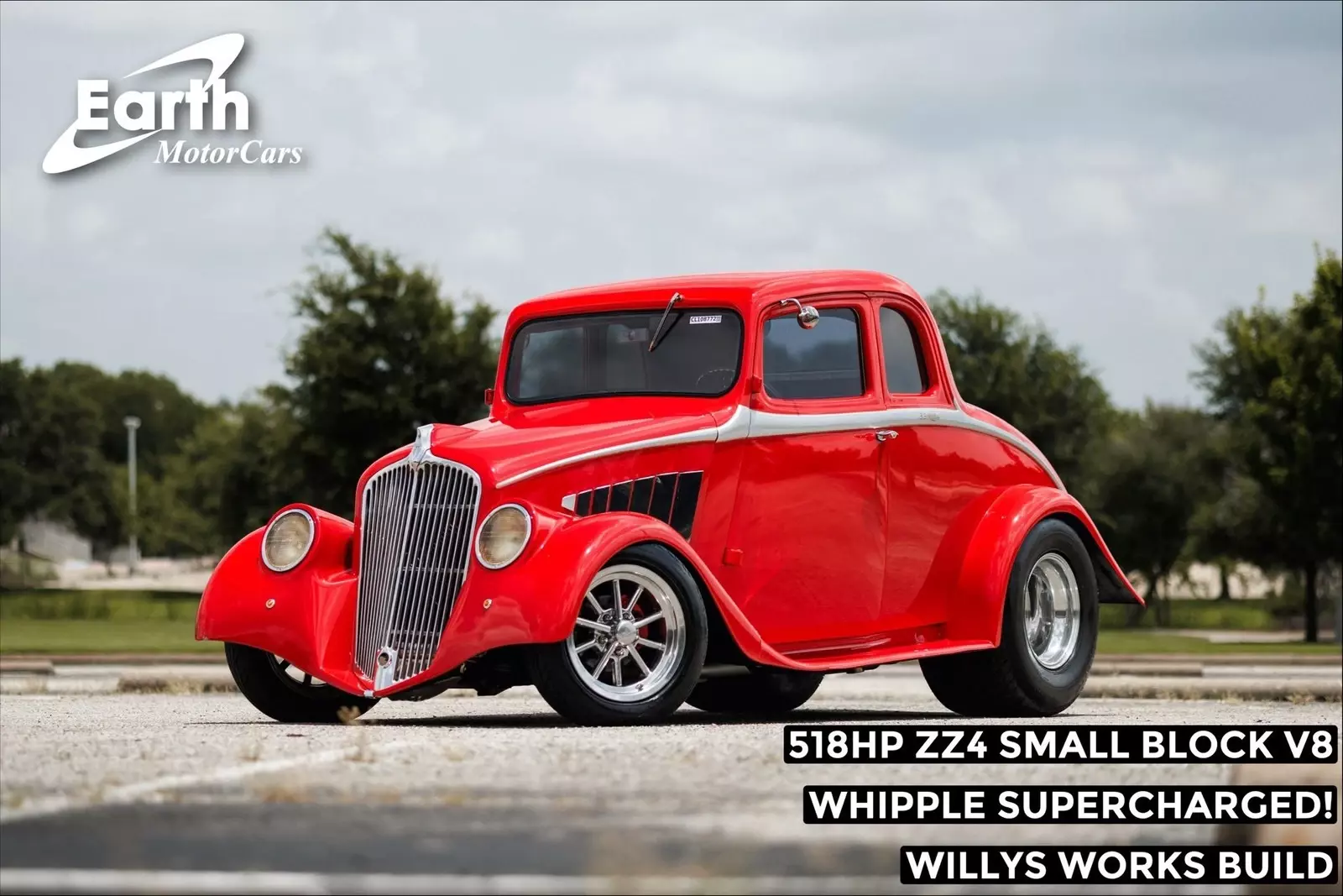 Earth Motorcars is excited to offer this amazing: 1933 Willys Custom Coupe 518 HP. This beast was built to turn heads.Features:Built by Willys WorksZZ4 Small Block V-8 Crate EngineWhipple SuperchargerRated at 518 HP and 544 ft-lb of torque700R4 Automatic Transmission with 2500 RPM stallVintage Air A/C4-Wheel Disc Brakes9-inch Ford Rear EndMickey Thompson Directional Tires24x5.00R15LT Front 31x16.00R15LT RearExhaust CutoutsForward tilt front clipFully Custom Modern Tan InteriorCustom Center ConsoleBuilt-in Pioneer Head Unit AM/FM/AUX/BTTilt Steering ColumnPower Window ConversionAutometer Sport Competition Gauge ClusterAnd so much more...All of our classic cars go through our rigorous inspection and items that need repair get fixed unlike cars bought at auctions, So rest assured that you are getting a quality classic car! All classics are sold Miles Exempt regardless of what the odometer shows. This vehicle may be eligible for our EXTENDED WARRANTY that covers a wide variety of components (certain exclusions apply).....Please ask your sales representative for details. Welcome to Dallas Fort Worth's Premier Lotus, Luxury, Exotic and Classic Cars Dealership. We specialize in offering the Finest Vehicles, Providing Outstanding Customer Service, Obtaining the Best Financing Options and Stocking a Large Selection of Luxury Vehicles, Exotics, Classic Cars and More! See for Yourself what Thousands of Customers have Discovered over the Years and Make your Next Purchase from Earth MotorCars! Our Goal is to Make you a Customer for Life! Learn more about us by calling214-483-9040 or via e-mail at . Visit us on our Website at