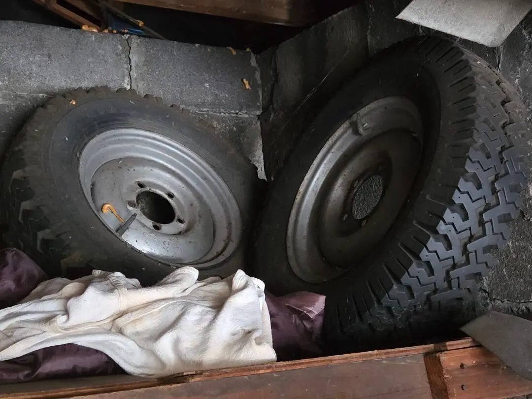 The four original wheels come with the purchase, they are shown in a photo stored in the garage rafters.