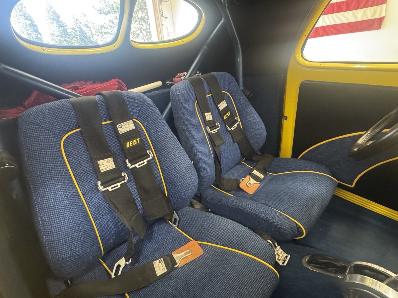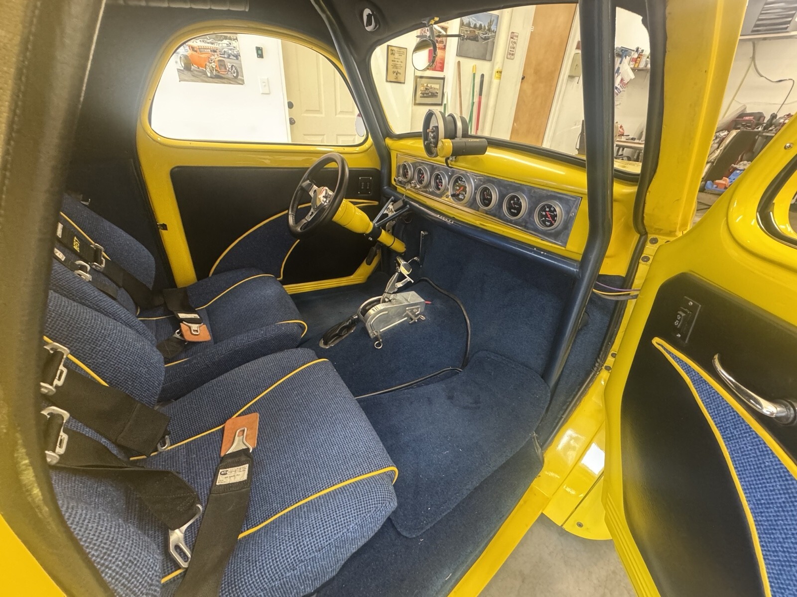 Custom Gallager upholstery, also full cage for that pro street look. ( I did remove the door bars due to knee replacement but they are included with the car). All gauges work, Water, oil, gas, volts, trans, also has monster tach.
