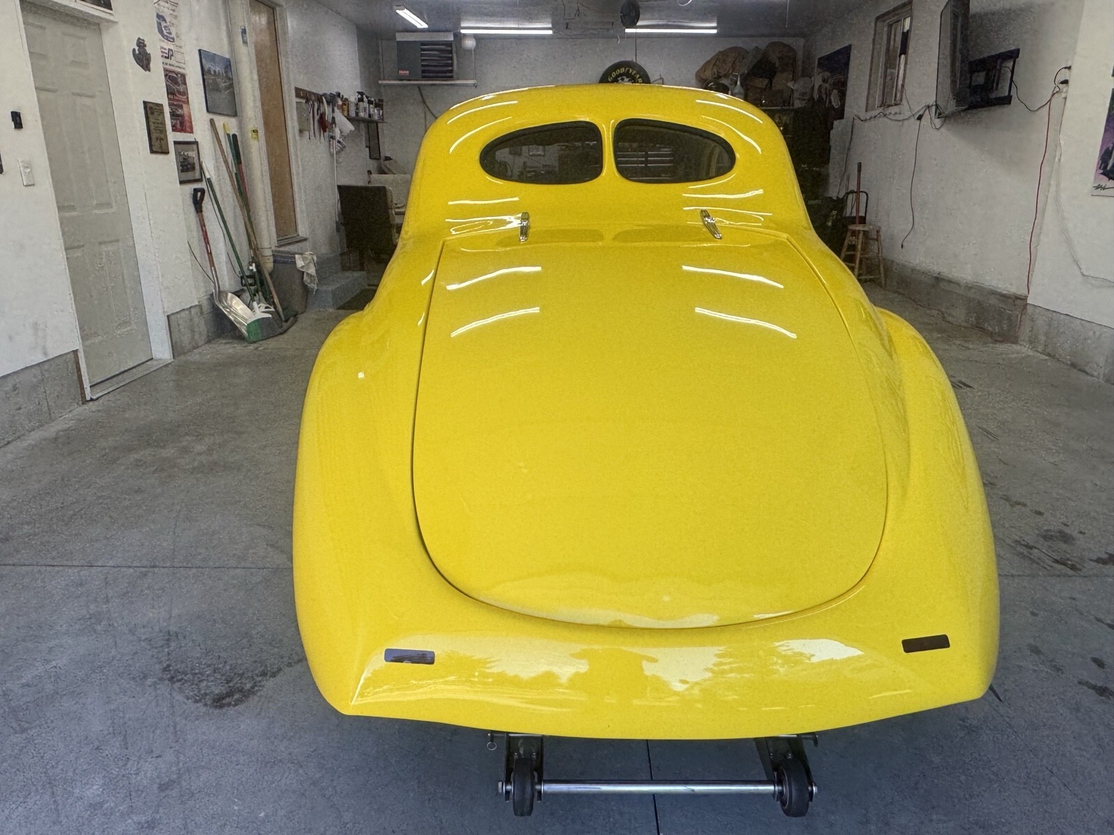 Privately owned 1940 Willy’s Coupe with a 41 Willy’s Grill. This is a steel body with glass tilt nose, doors, and trunk/lid. Beautifully molded rear glass fenders to the body! Runs & Drives wonderfully!