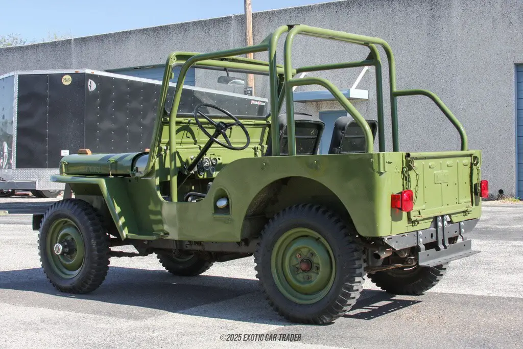 MakeWillys ModelCJ-3A Year1953 VIN3J136537 ExteriorOlive Drab Green InteriorOlive Drab Green Engine134ci I4 TransmissionManual/Standard Miles23711 ShippingQuote- Click Here Trade-InQuote- Click Here - 1953 Willys CJ-3A Jeep- 134ci L-Head I4 “Go-Devilâ€- Carter WO 1-Barrel Carburetor- Borg-Warner T-90 3-Speed Manual- 4x4- Olive Drab Green Exterior- Olive Drab Green Vinyl Interior- Dana 18 Twin-Stick Transfer Cage- Ross Cam-and-Lever Manual Steering Box- 16†Steel Rims- Hydraulic Drum Brakes We are Exotic Car Trader