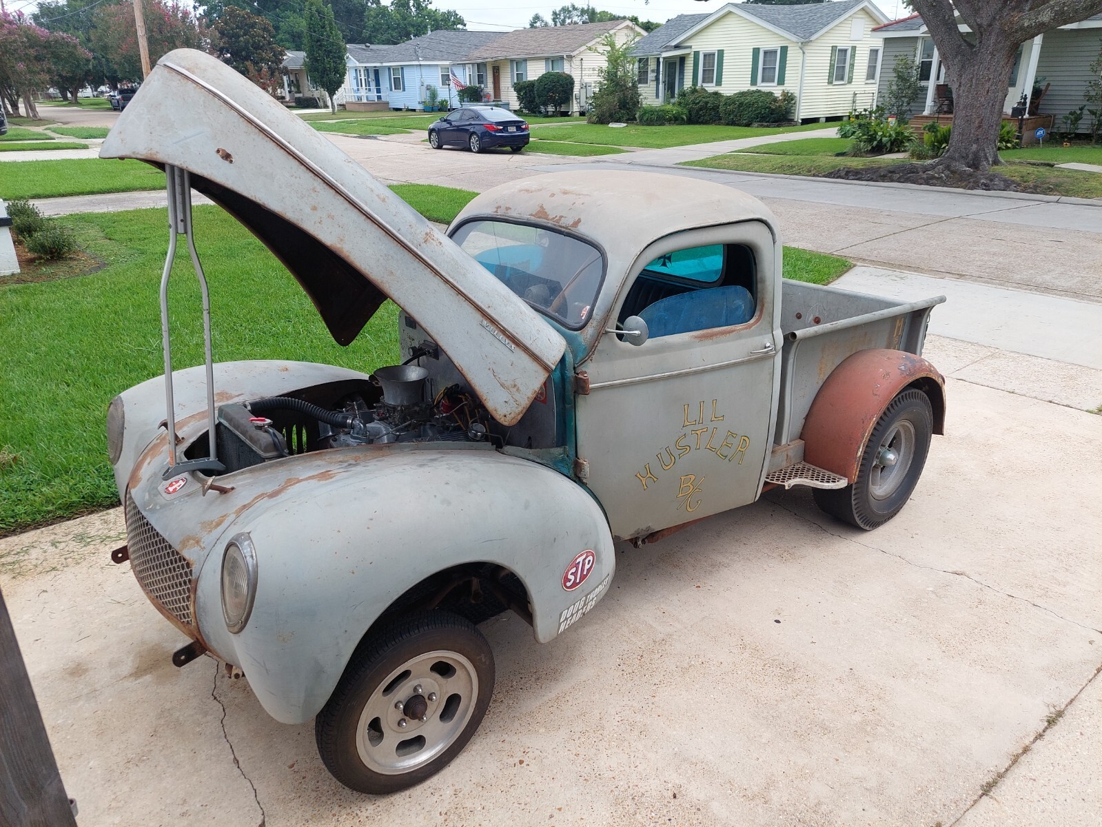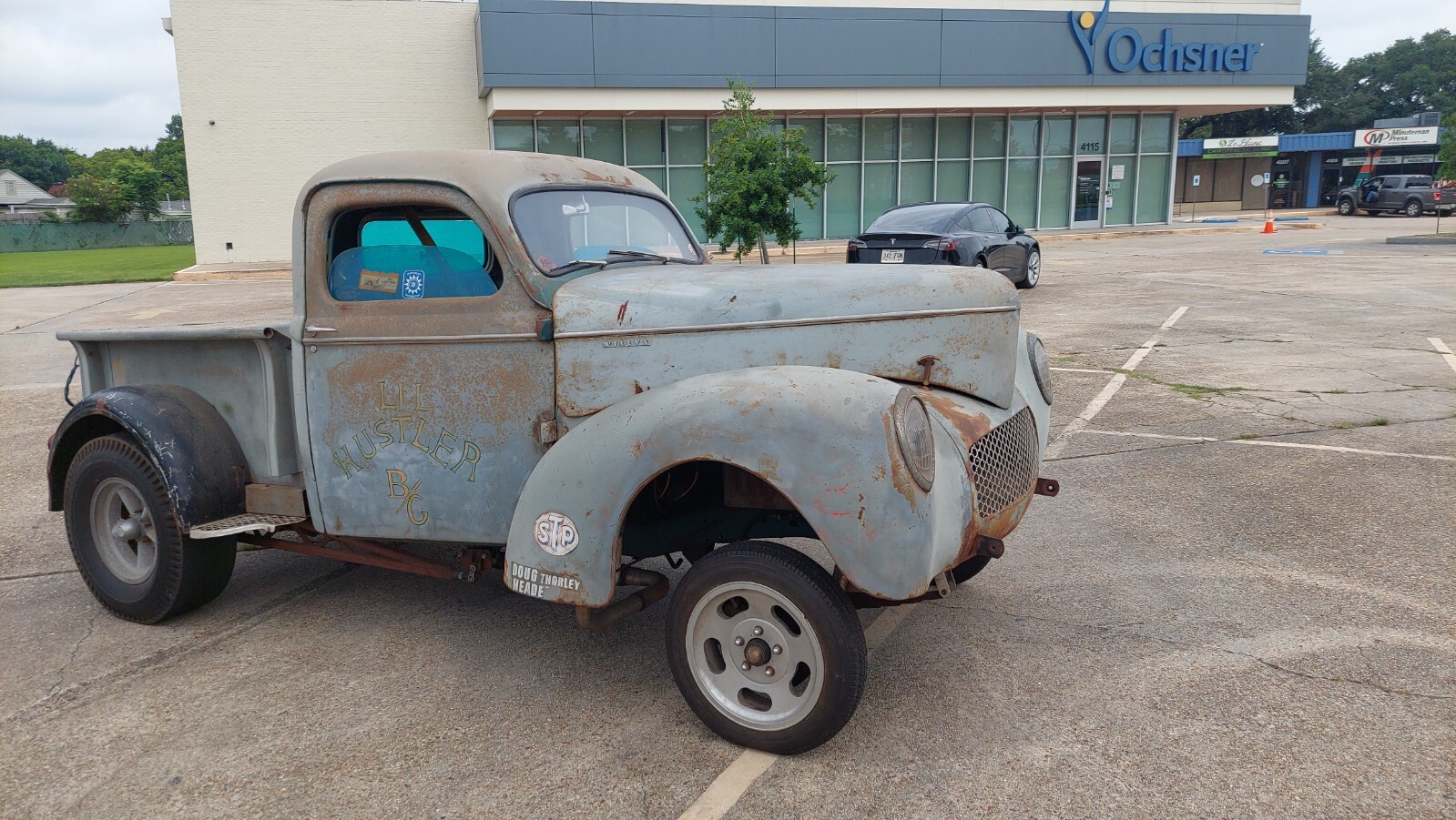 All steel 1940 willys pickup truck with 41 cente, 327 chevy motor out of 65 corvette 365 fuelie numbers, turbo 400, 55 chevy rear end, ladder bars .out of baytown texas class winner 1967 Laplace Dragways outside New Orleans la. has decals on pass door . drivers door old shoe polish originally D/gas ....have all new Willys replacement parts .1941 gril, door handles and stainless trim for door and hood, head light bezels and glass... comes with fiber glass bolt on hood as it had a blower.. exgasser plate not for sale .. chute pack for show take to local cruise nites. not perfect cool door slammer.. gets lots of attention 1967 m a& h slick, front tires not that old.its tame to cruise had its day in the sun lots of vintage parts b & m series 60 shifter . front s10 dics brakes speedway axel...runs drives stops... has SILICONE brake fluid . i bought this in pieces in 99 put back together. The bed sides where redone ......As is as found clean title my name insured.. new orleans 70121 also comes set of rear street tires and another set of back rims .....have to many toys ..thinning out