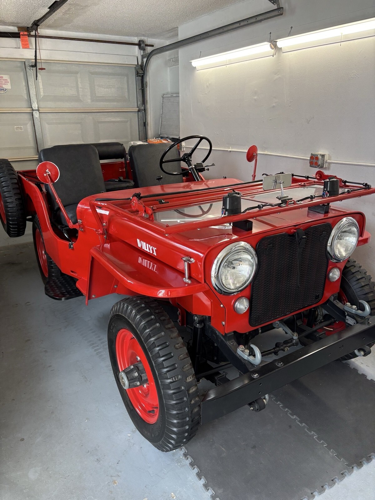 This Jeep Willys Cj2a has: complete New Body kit stamped WILLYS, New tools box stamped WILLYS, New rear Draw Bar Hitch,New two sides Steps Kits, New 4 Drums and brake Shoes, New Emergency Brake Sistem, New master Cylinder with New brake hoses and Lines, New Fan Belt, New Clutch, has a Original “GPW” Radiator with New water Hoses, New Radiator Cap, New Distributor Cap and Kit, New Front Headlights, New Ignition coil, New Gas Tank (Spedometer and Gas gauges no works), new oil Air filter, New Clutch, New Fram Style oil filter, New Piston Rings .040 o.s., complete New Gaskets, New Exhaust System Kit, 5 New whells and Tires 6.00 x 16 NDT, New Rear and Front Seats, original SOLEX Carburetors, New Oil Bath Air Cleaner, New gas Pump, New Cristal In-Line Fuel Filter, New Seat Belts Rear and Front Seats, inside tool box you find a Jack and some basic tools, this Jeep Start and Run very well and is sold AS IS CONDITION, has a CLEAN Florida TITLE.