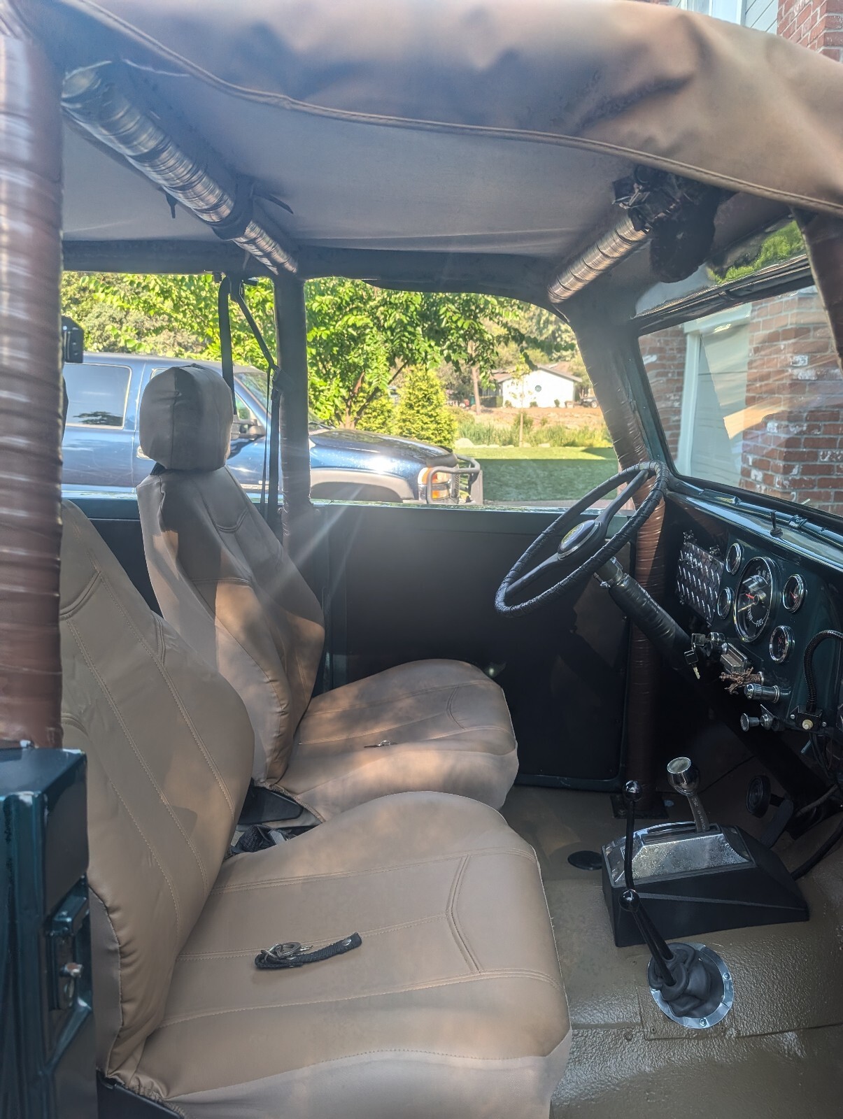 New brakes and duel reservoir power booster. Brand new blueprint 350 3 point seatbelts Rebuilt hubs Headers Stewart warner classic guages