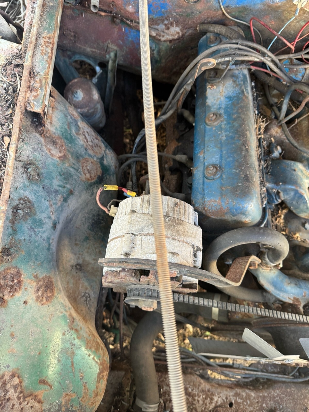 The truck has a V8 engine swap (engine type unknown). I was told by the previous owner that the truck was running when they owned it and that it needed a fuel tank replacement. There is a fuel tank visible in the truck bed, which I was told was new and intended to be installed. I cannot verify this information and have not attempted to start the vehicle myself.