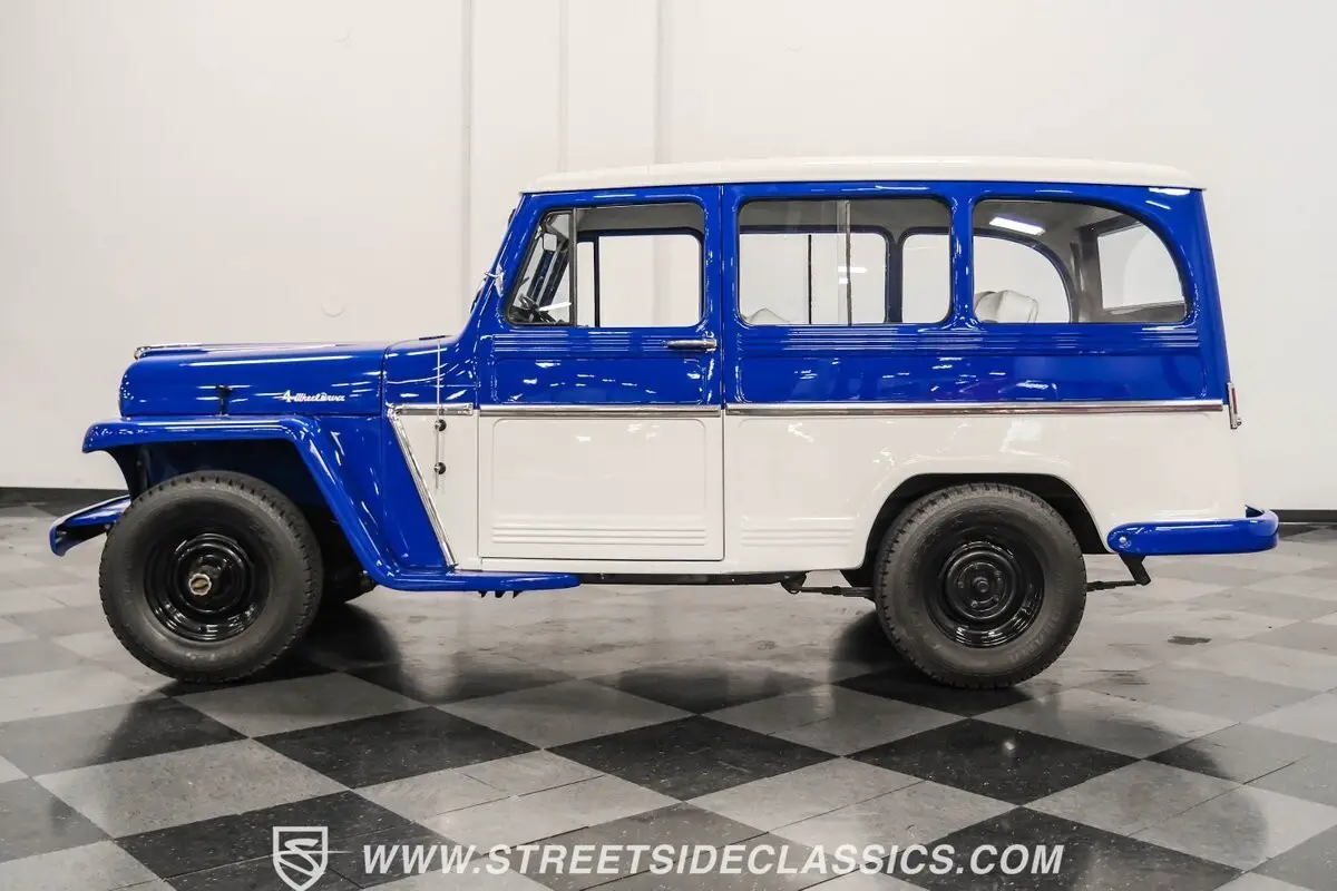 This is one "super clean" vehicle inside and out. It's hard enough to find a Willys as it is, but finding one in this good of shape is almost impossible. This 1961 Willys Jeep Wagon 4x4 has been completely restored and is dressed to impress. The Blue and White two-tone exterior instantly catches the eye with its black wheels, painted bumpers, and chrome trim. Its stance is imposing, the front grille even more so, and overall, it's simply a very cool vehicle to look at and enjoy.