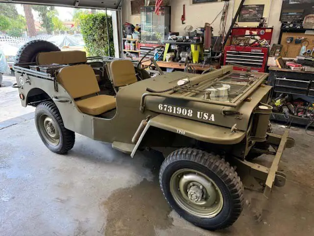 The Jeep has the original 4 cylinder 2.2L Go Devil WW2 engine and manual transmission.