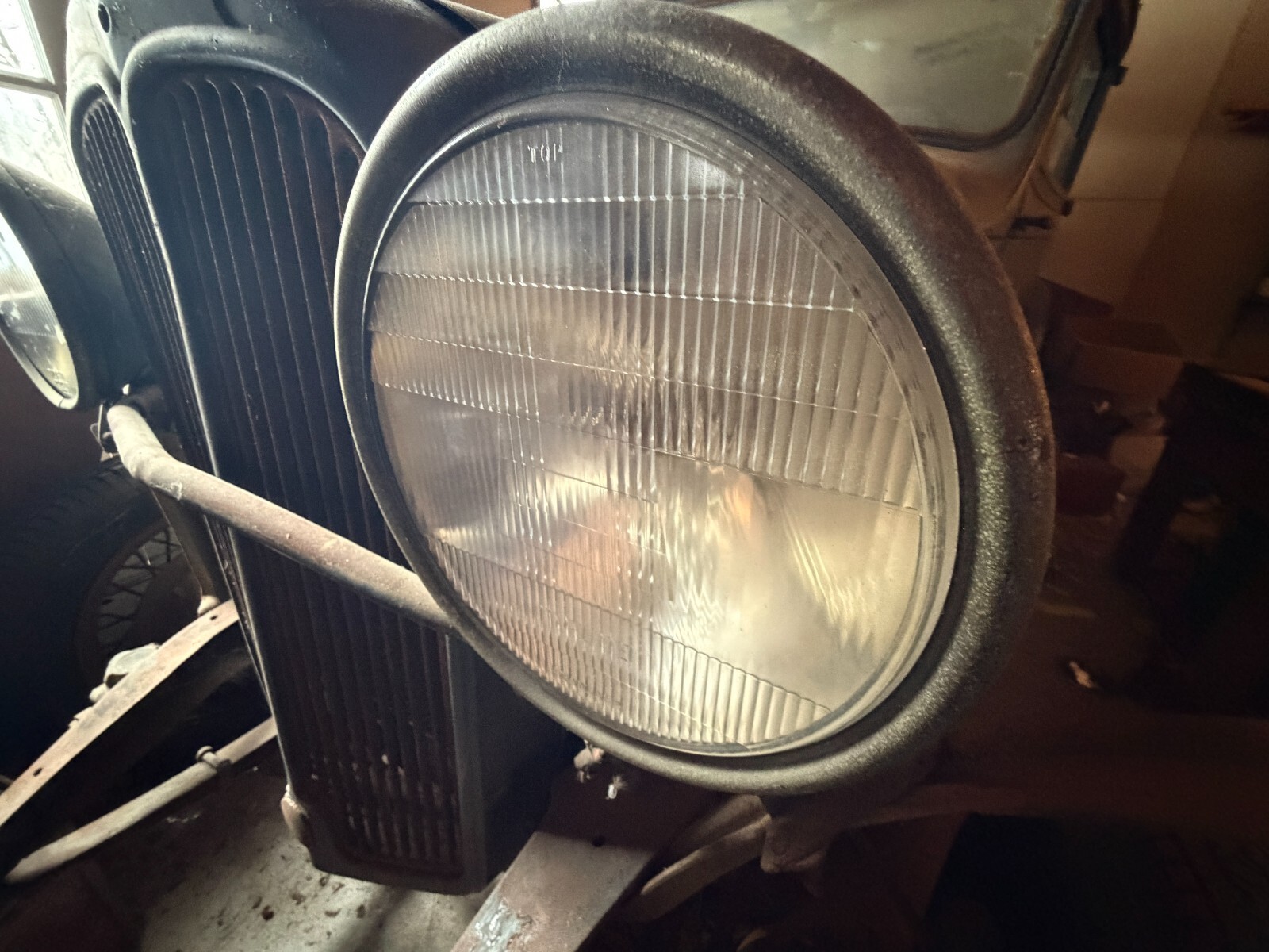 This car has NOT RUN and is NOT IN RUNNING CONDITION. Last run decades ago. It appears to be very complete. The front fenders were removed at some point but are present and accounted for an will be included with the sale. Original glass headlights and fog (?) lights.