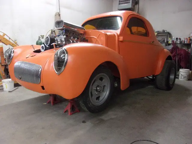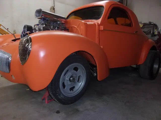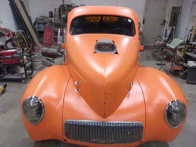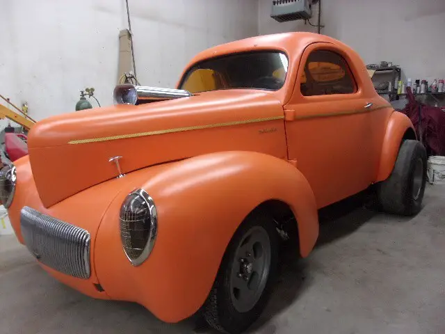 I HAVE UP FOR AUCTION A 1940 STEEL BODY WILLYS COUPE THE DECK LID ON THE CAR IS FIBERGLASS THE ORIGINAL ONE WAS IN BAD CONDITION. THE CAR WAS AN OLD 1960'S GASSER FROM THE EAST COAST NEW HAMPSHIRE, MAINE AREA. THE OWNER PASSED BEFORE I GOT MUCH HISTORY ON THE CAR THE FIREWALL WAS CUT OUT AND I REPLACED IT WITH A STOCK ONE. IT HAS AN ALL STEEL 1941 FRONT CLIP (SHEET METAL) ON IT FINISH IS A URETHANE SATIN ORANGE PRIMER SEALER . CAR HAS ALL NEW FLOORS IN FRONT AND THE ORIGINAL IN THE REAR IN GOOD SHAPE. ALSO HAS NEW REPO WILLYS TAIL LIGHTS