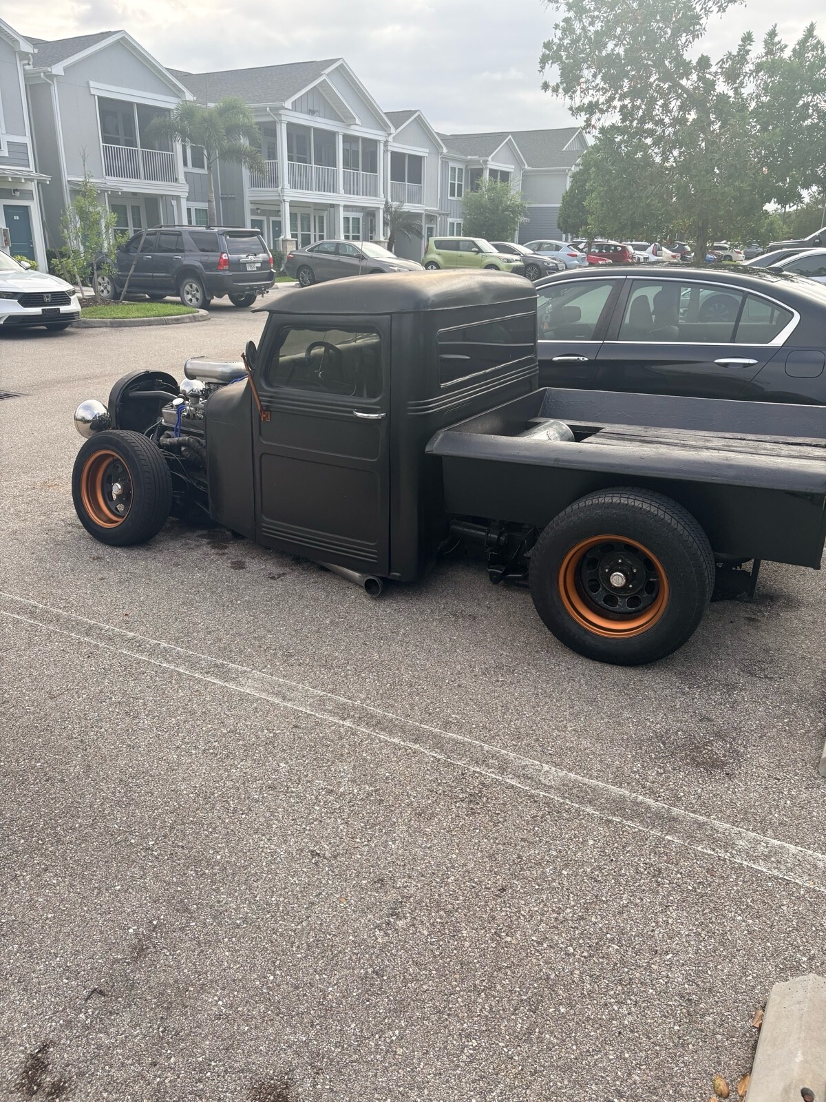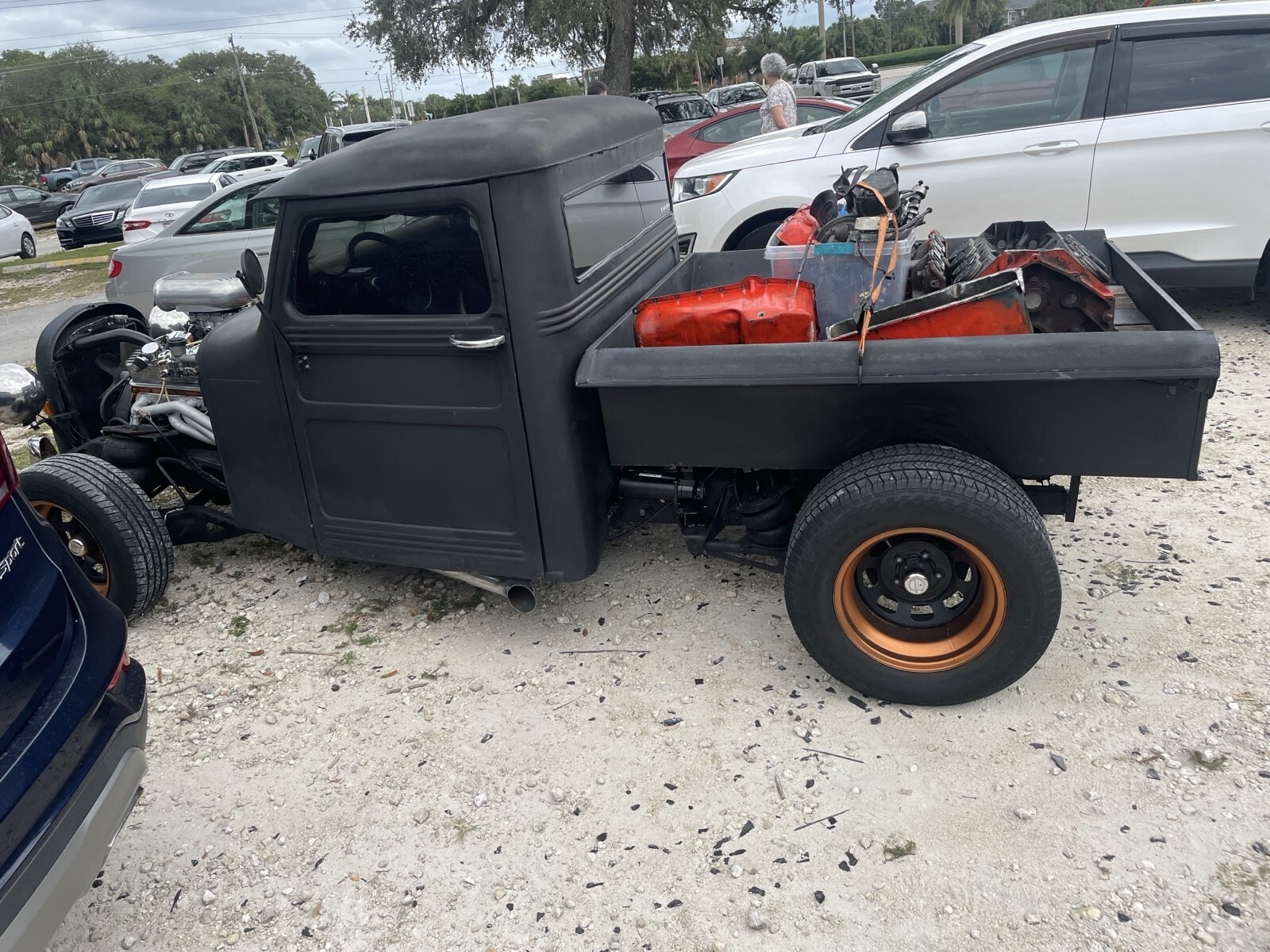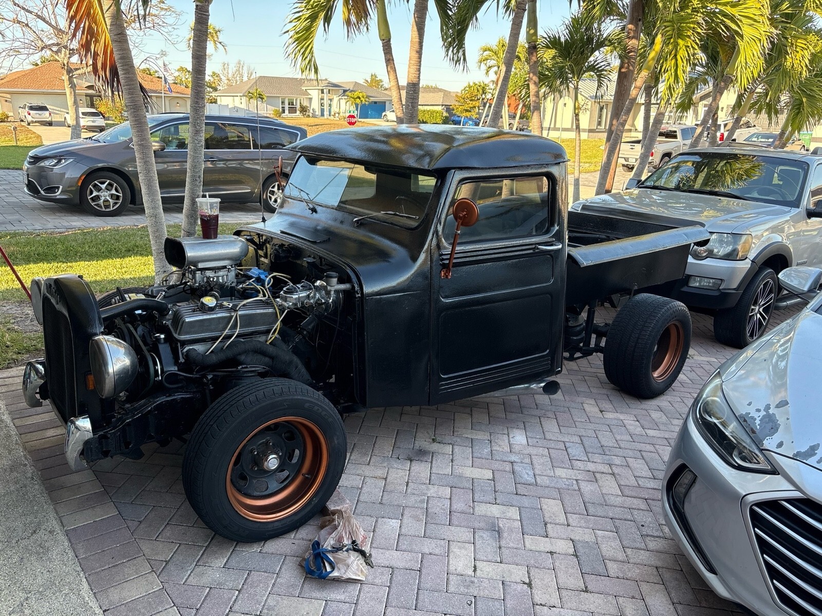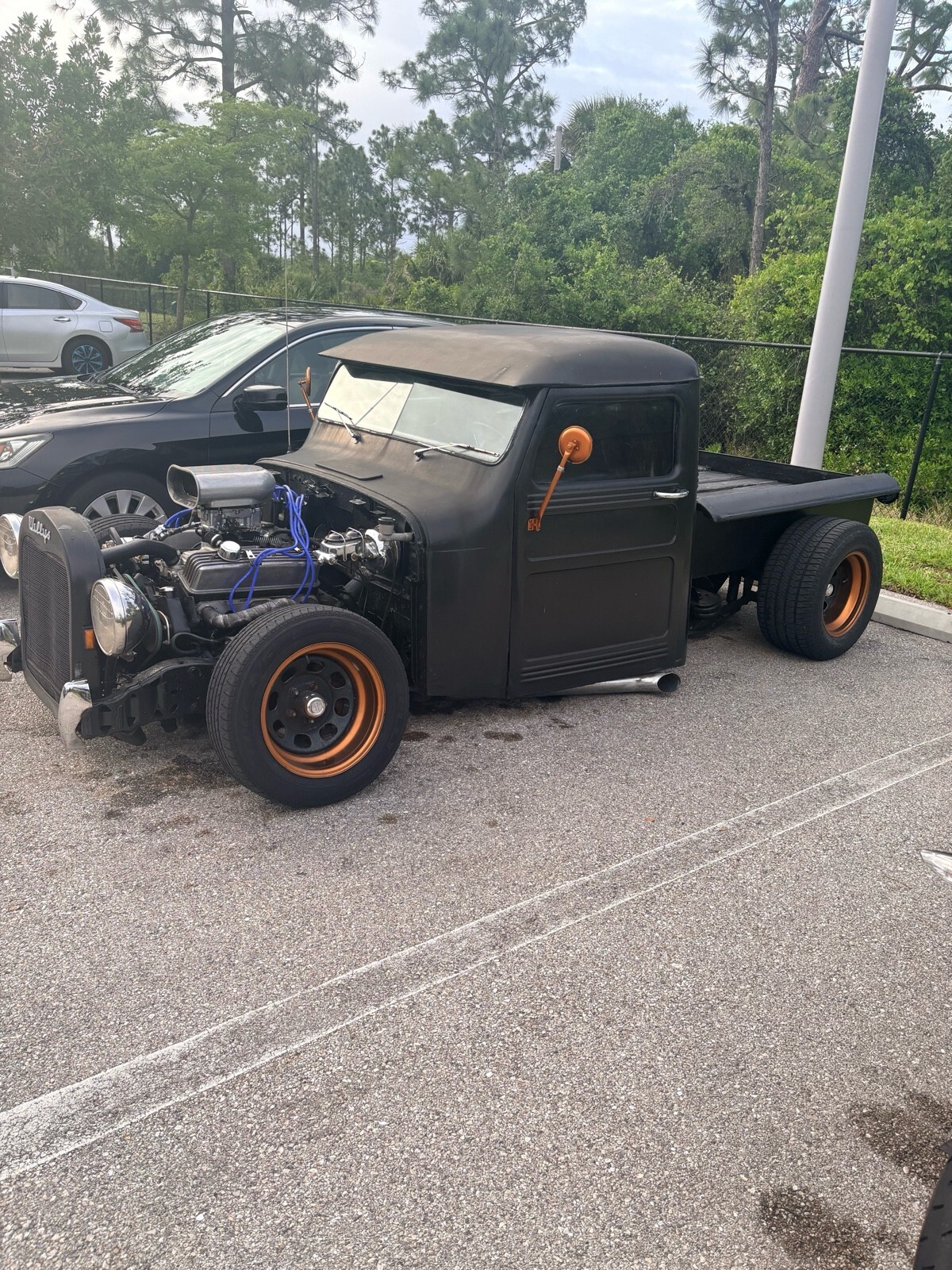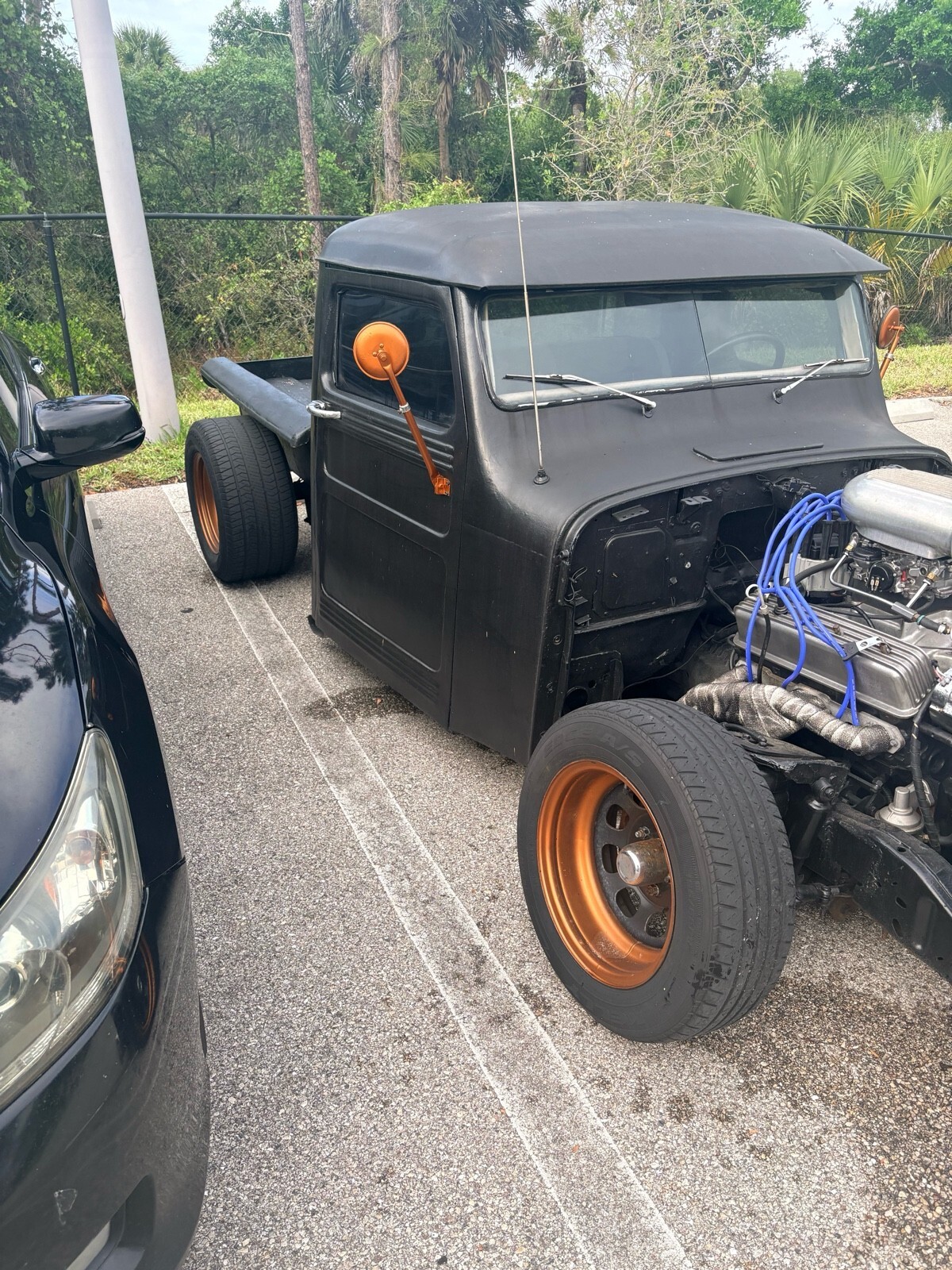Chopped roof ford rear end chevy 5 speed muther thumper cam summit racing New carburetor no oil leaks led lights air bags front and rear car could sit on frame runs awsome very very fast toque to weight ratio new clutch new everything always kept 100% mechanical dive any where beat every one off the line awsome fun built myself now have head and back injury thinking about selling ? Let some one else enjoy the attention sounds like a Harley at idle but quiet enough to go through McDonald’s power steering power breaks remote air bags remote led lights brushed aluminum oil pan valve covers intake plenty more goodies whatcha see is watch get !