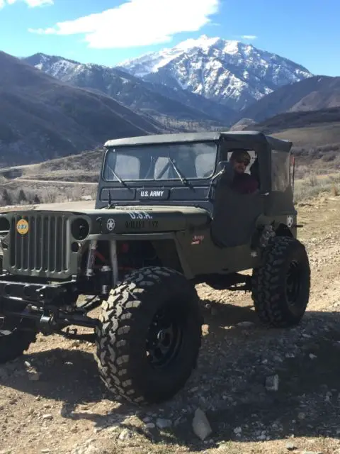 1944 Willys jeep for sale! The rear axel is a ford 9" with a Detroit locker, the front end is a Dana 44 with an air locker. Transmission is a th350 built with a revers valve body. Transfer case is a Dana 300 with 4.3.1 gears! Tires are 37" super swamper iroks! Fun jeep. Still needs a few things done to it!